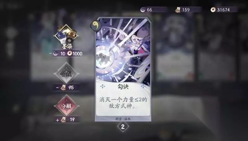 虽然看起来普通,互拼力量较弱,但她的压制力并不体现在式神之间的互拼上。技能机制决定了她是一个用来终结比赛的角色。切换到妖刀万华形态后,在敌方战斗区没有式神时,配合自身的战斗牌可以连续攻击,即使对手有20多点生命值也能一套带走。杀念这张牌更是让对手在三勾形态时感到恐惧。 判官