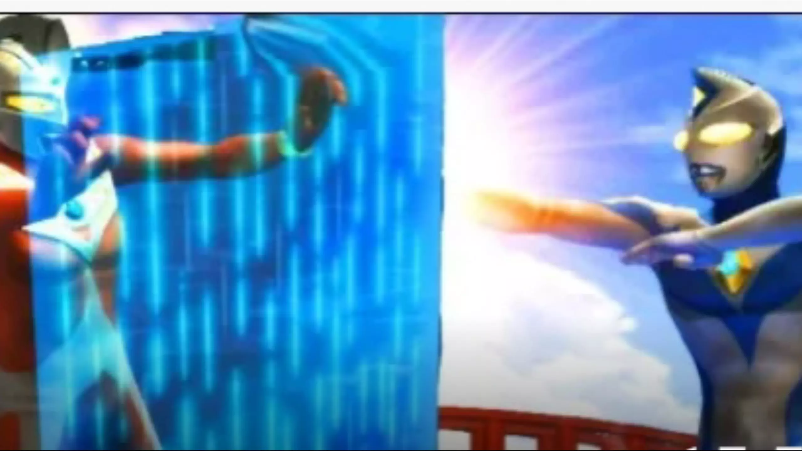 这是《奥特曼格斗进化3》的对战内容,展示了戴拿奥特曼切换三形态对战迪迦强力型奥特曼的过程,对战中迪迦强力型处于被压制的状态。