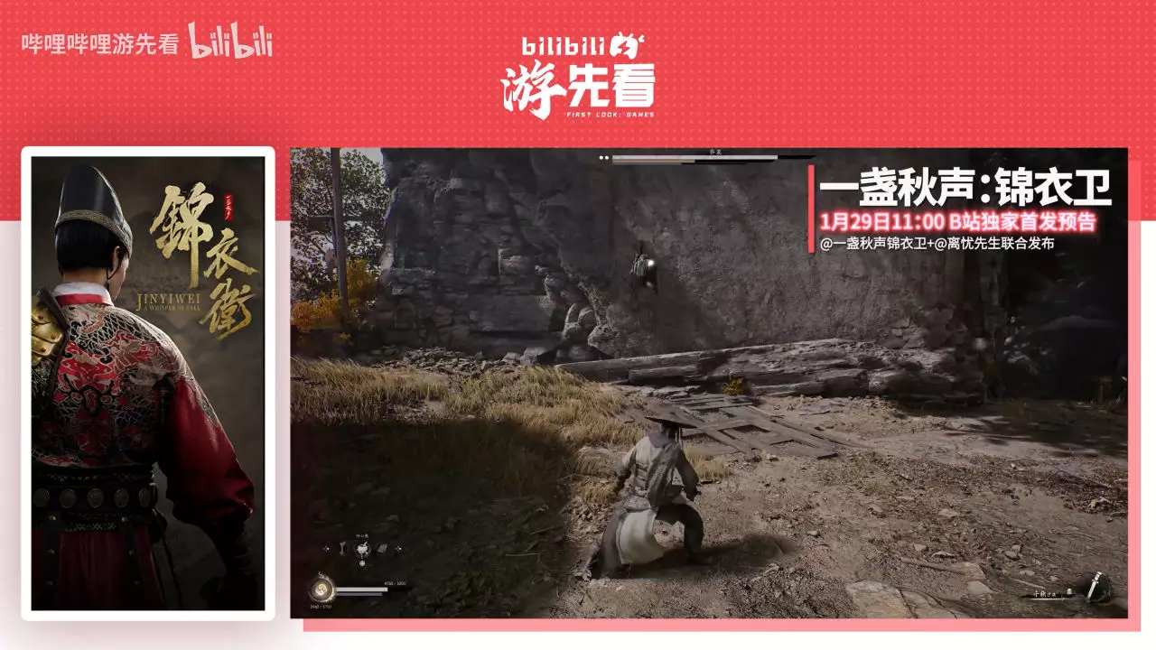 【哔哩哔哩游先看】今日,哔哩哔哩游先看官方宣布,2026年1月27-31日,五款国产单机游戏重磅亮相。2026年1月27-31日,每天上午11:00,将发布一款游戏的独家预告。1月27:赛博神话动作游戏《蝼蚁之城》1月28:游戏《枕刀歌》1月29:游戏《一盏秋声:锦衣卫》1月30:游戏《古神:风里希》(古神实验室(Genigods Lab),是一支由拥有20年游戏开发经验的团队。秉持“还原东方神话魅力”的初心,力图再现上古传说中的经典故事。)1月31:游戏《逃离鸭科夫》全新联动