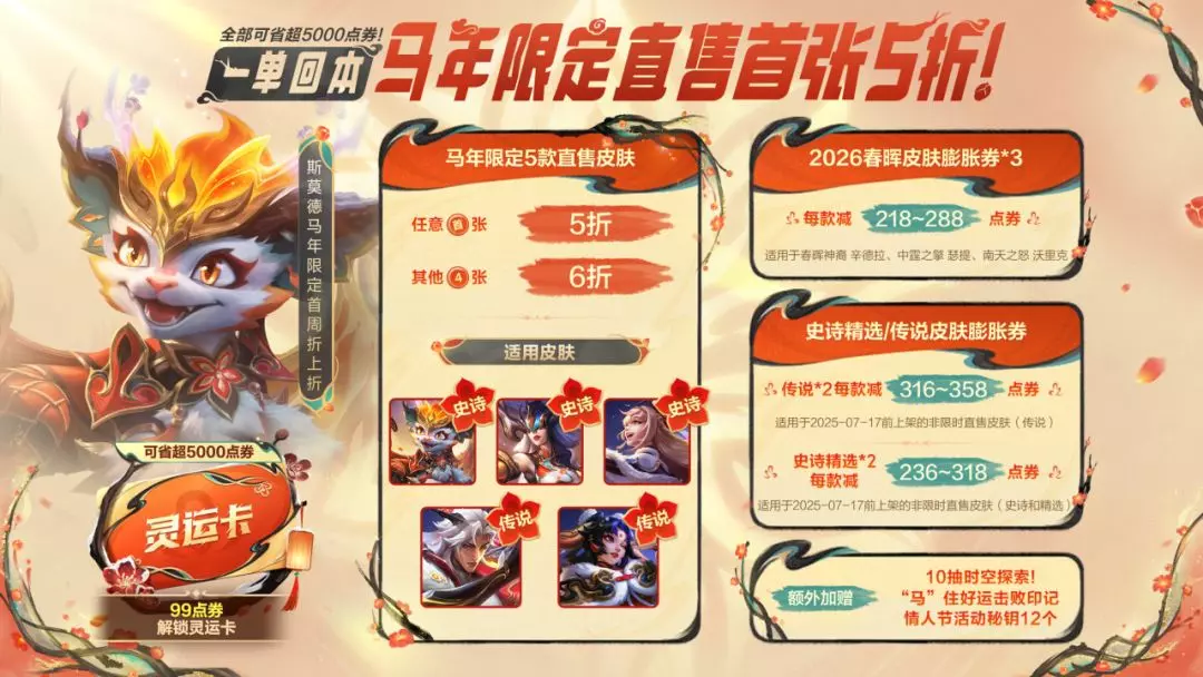 🌟马年限定5款直售皮肤:首款5折,剩下4张6折!