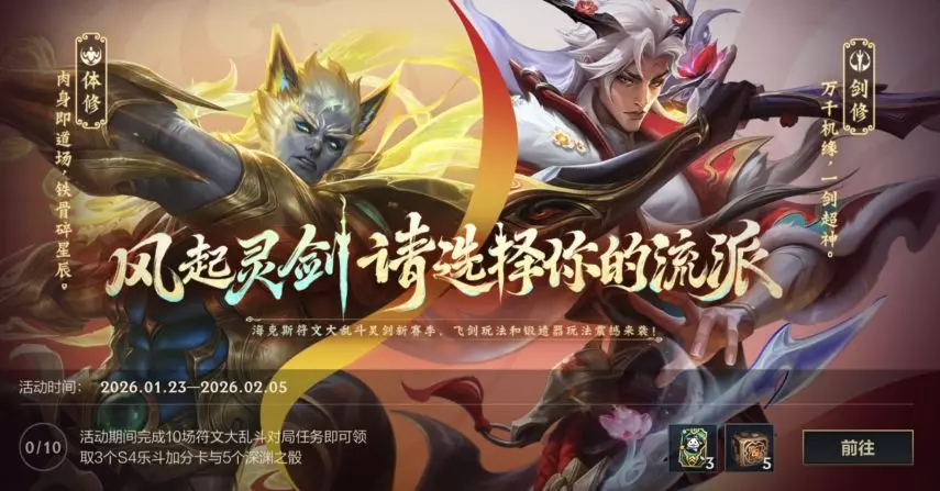 即日起至2月5日23:59,完成10场符文大乱斗对局任务即可领取S4乐斗加分卡*3与深渊之骰(14天)*5好礼~