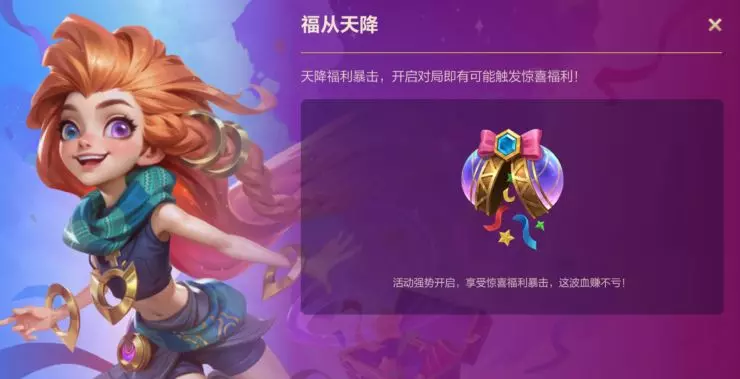新赛季排位福利再加码!“福从天降”活动强势来袭,天降福利暴击,开启对局即有可能触发惊喜福利。正值赛季初冲分黄金期,快邀上开黑搭子一起征战峡谷吧~