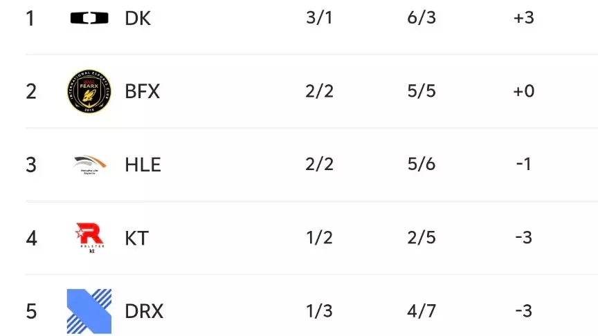 最后的这5场比赛,两组估计还是拉不开差距,DK打T1没有胜算,HLE大肯定也打不过GEN,DNS交手BFX的话铁定赢不了,NS的战力跟KT也有差距,如果是这个剧本的话,那两个组积分还是持平,最后就得看BRO和DRX的胜负了,BRO赢的话,男爵组会领先远古龙组1分,反之一样。
