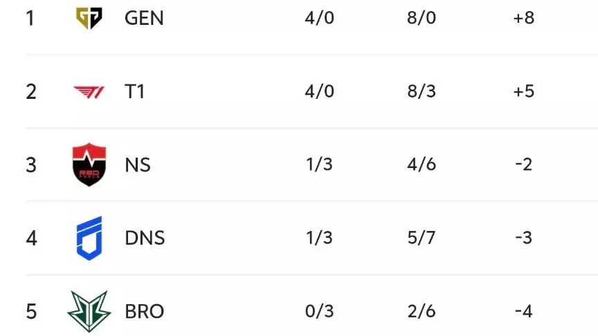 最后的排名,还得看超级周BO5,GEN和T1肯定不用担心,男爵组保底会再加4分,但剩下的三队,大概率还是会拖后腿,BRO谁都打不过,DNS情况也一样,NS得看对手是谁,如果这三场全败的话,T1和GEN即便是6连胜收官,其中一队也要去打入围赛,T1小场输得多,大概率是T1。