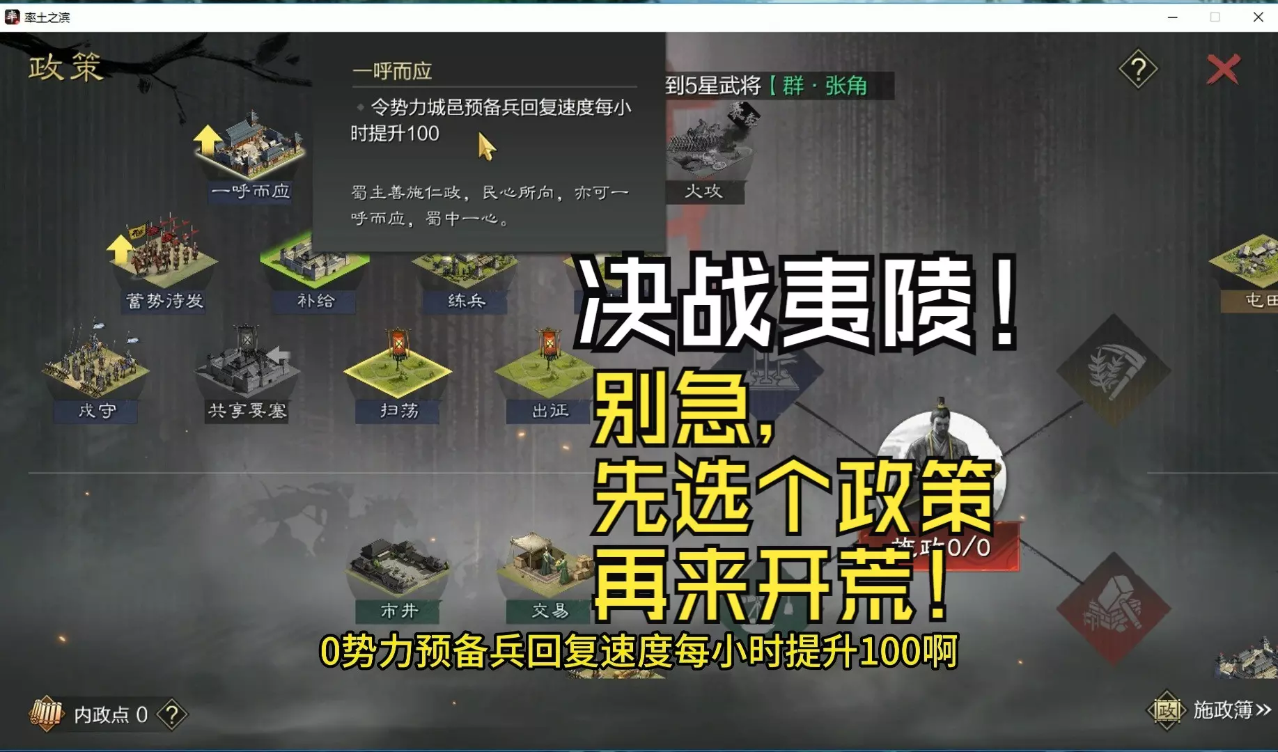 这是《率土之滨》的开荒攻略,讲解祝融夫人、华雄、甄洛组成的斩龙刀队伍,24小时达成5000势力值的开荒方法,13分钟即可学会该开荒思路,还包含征兵、战法经验转化等开荒相关操作讲解。
