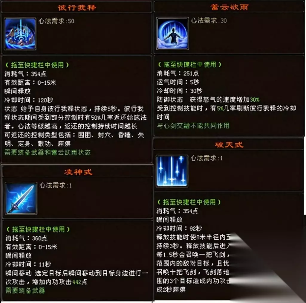 2慕容 慕容的技能挺好的,凌神的距离多了,破天可以锁定目标而且控制时间为两秒了,抵消了侠印的减免,蓄云欲雨清除冷却还在测试不清楚,彼行我释变成了5秒的状态,该状态有50%几率反弹控制,详情请看视频。