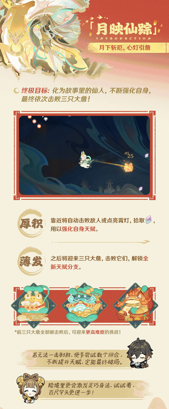 每当璃月港装点一新,熟悉的海灯节也如约而至。今年总务司为旅行者筹备了四个极富趣味的游艺活动,此外还有一位曾在众多传说中现身的神秘仙人,等待和旅行者相识相知。