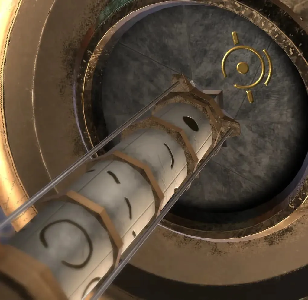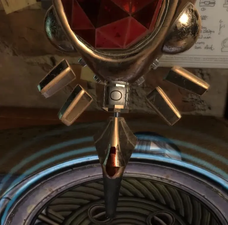 7.点击二阶段出现的“黄宝石”,提示“圆盘无法转动”,放入【红色圆盘】,卡住的圆盘此时可以转动