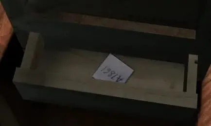 2.拉开抽屉,发现是空的,关闭抽屉后继续推,获得密码B:A7861