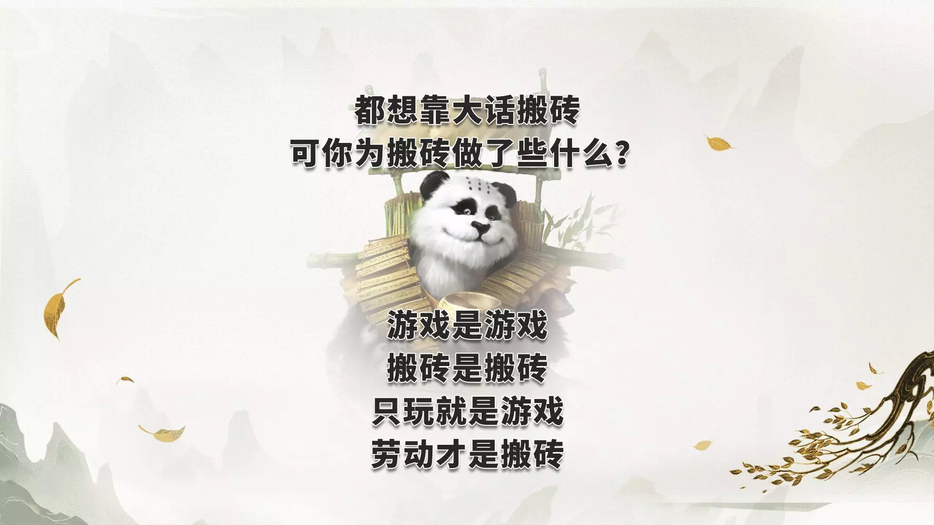 大话西游2:都想用大话搬砖,而你为搬砖又做了些什么呢? 玩咱们就好好玩,搬砖咱们就认真工作,混作一谈是很难两者都做好的!你说是吧?