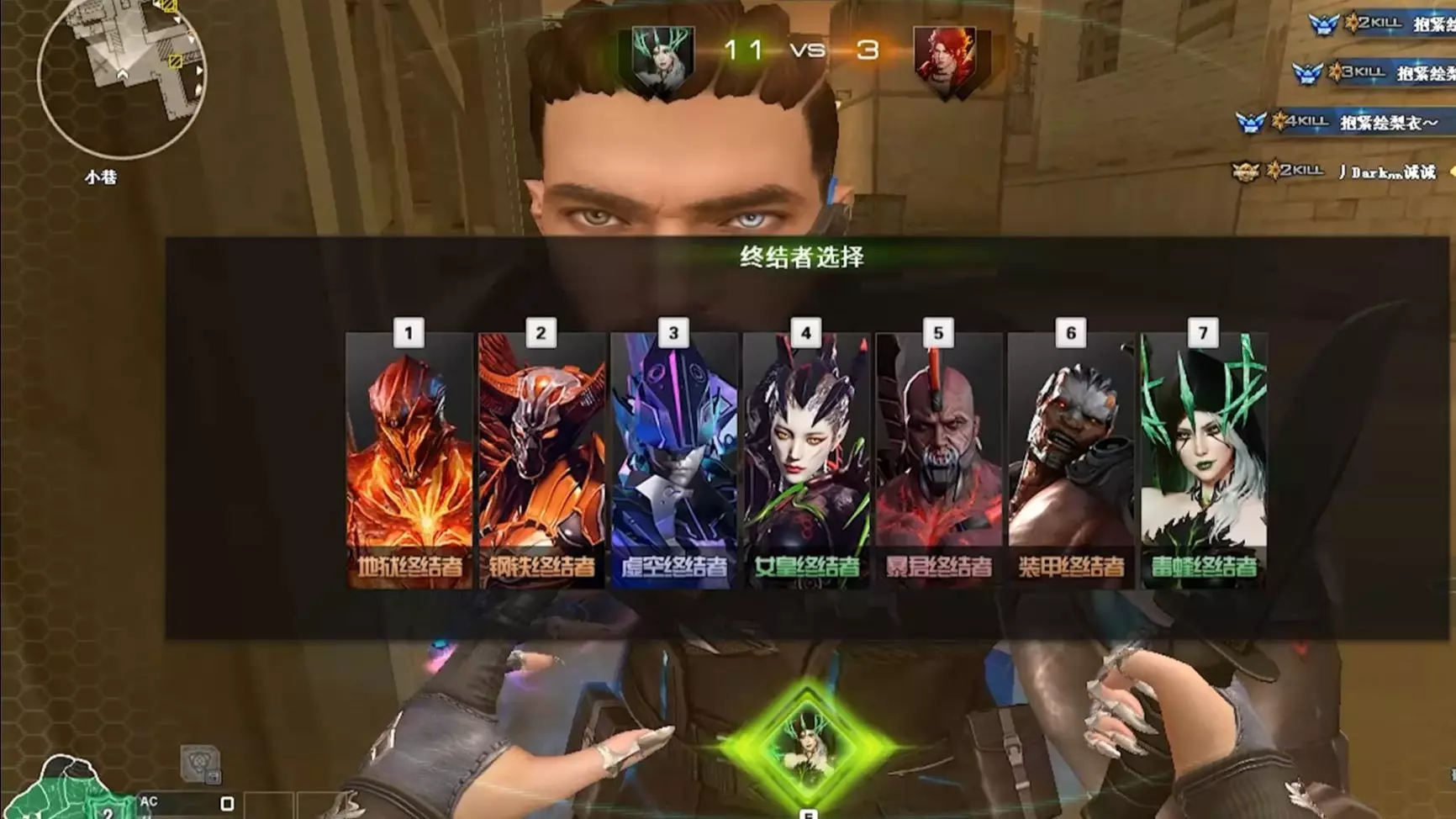 这是《穿越火线》的生化模式游戏内容展示,呈现了运输区、生化沙漠等不同地图的对局画面,玩家分别以佣兵、生化幽灵等不同身份参与对战,展现了多样的近战武器与游戏玩法。