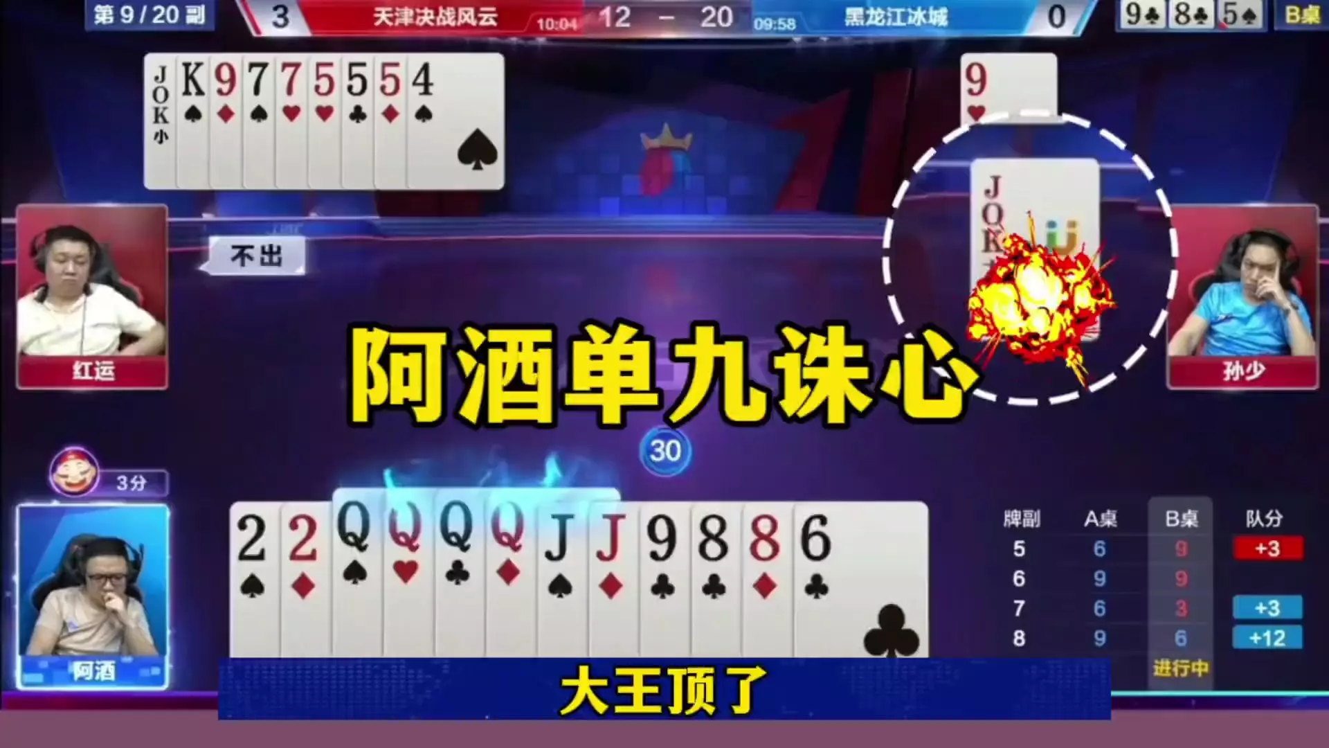 三岁玩牌破釜沉舟四个3的大胆一炸后期残局细腻的行牌为自己争取到了胜利!