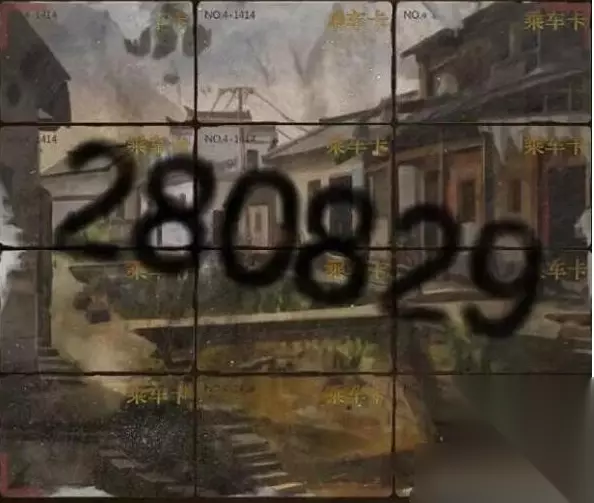 11、然后我们把纸钱给售票处,买张公交卡,进房间把公交卡放桌子上,开始拼图游戏,四个角公交卡有标记,获得密码280829。