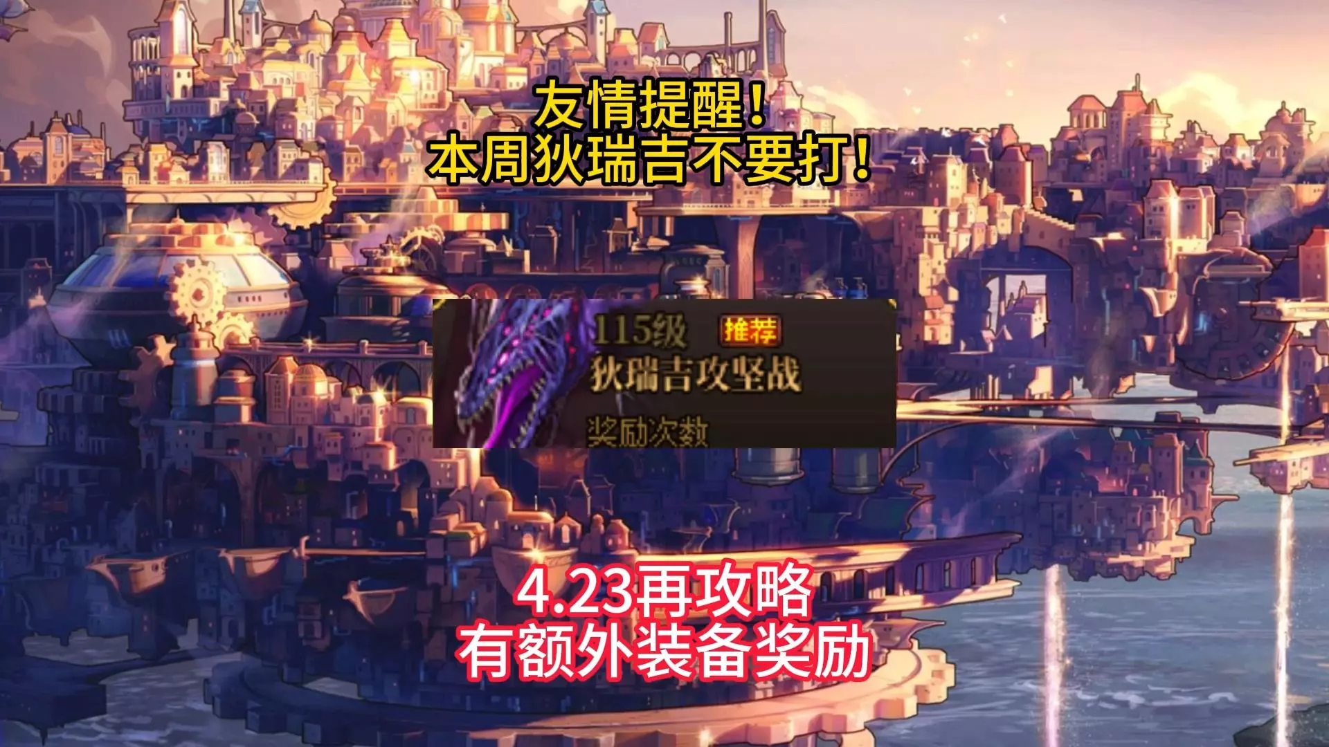 这是《地下城与勇士》4.23千海天版本上线的玩法避坑攻略,介绍了版本必做事项:可参与“西装打团再出发”活动领1天期限西装节装扮,赛利亚第三天领天空自选礼盒,要注意悖论迷宫任务避免被吞,还有宇宙宝物解码活动可参与抽奖。