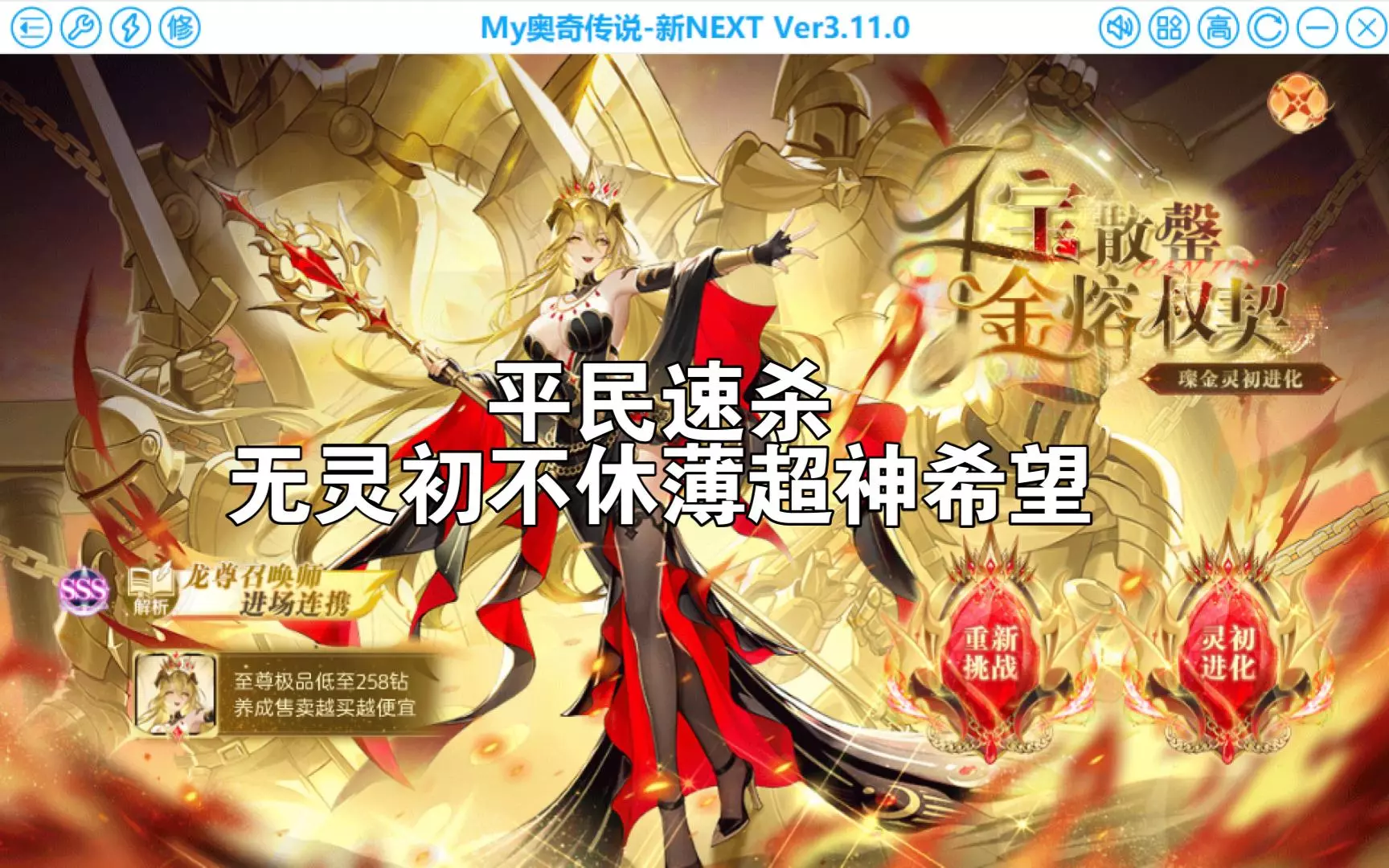 [灵初]煌耀璨金·龙尊 灵初璨金 灵初璨金1,提供两个打法,分别是无灵初希望和有灵初希望的,可以自己慢慢拖一下进度条,挨着呢,章节放不开了。 (1)无灵初希望的,末炎契约王炎,王炎英雄技,王炎转光次神火,超物攻buff,看暗龙怎么发绝毁,我暗龙配置还是和打黑金未来的时候一样没动,30次左右过。 (2)有灵初希望的,末炎契约王炎,王炎英雄技,王炎转光次神火,超物攻buff,灵初希望带神暗正理(本来是带神暗帝释天的,但是我过不去,去打了个乐园切成神暗正理了再回来打璨金把这事忘了,但是竟然更稳,误打误撞了),10次内过。 灵初璨金2,丹青没有去唤灵祈愿换,光明王契约大天使,大天使英雄技,超物攻buff,灵初希望带神灵正理,看无敌发挥。 灵初璨金3,从第2关改的,丹青没有去唤灵祈愿换,光明王契约大天使,大天使英雄技,超物攻buff,灵初希望带神灵正理,看无敌发挥。3 6同阵,也是个意外,打完1 2 3想去试试3的稳定性,但是重新进挑战他自动切到了4 5 6那面,然后刷成6了,抽象的是还过了。。薄伽丘带气。 灵初璨金4,谁设计的把数字1标在后面,除了元伊嬴政双锁,别的真想不到(真的吗???),灵初希望万变个格挡星神,抗住第一下别死,灵初希望带神暗正理,元伊契约嬴政,王不动英雄技,元皇稍微肉一点抗一下对面王无烬,元皇赋能昆仑,不赋能也行,超物攻buff,哎,真的没有别的办法吗??? 如果你的元皇真的扛不住,那就用这个启元伏妖的,不过需要昆仑,希望,光次都万变格挡星神,而且小刷昆仑光次输出。后面过程是这个,注意,启元伏妖不要有配置,血量低于元伊,启元伏妖赋能昆仑。另外我也考虑过未来倒着打,但是输出太差了。 灵初璨金5,每个人的星神一定对好,昆仑绝毁不能高也不能低,破击buff最好,光次万变格挡星神抗住对面女帝一下,青云和光明王万变格挡星神,每个精灵配置都有可以对一下,王梦赋能自己,超过440辉跃之力,光明王契约元皇。正理和希望有天煞孤星的话可能好刷一些,灵初希望带神暗正理,王梦一定要有天煞孤星降女帝气势,昆仑一段绝毁是551303,我带超物攻buff,56w多绝毁就刷不过了,一定一定对好配置,看好绝毁,昆仑第一次通灵不能杀死女帝。 灵初璨金6,和第三关一样,没有什么注意点,薄伽丘带气肉住就行。剩下交给无敌,灵初希望带神灵正理。 灵初璨金4(无敌打法): 挨个精灵,配置对好,血量顺序: 年轻秩序(2811967)<空不休(3261816)<王不动(3324464)<元皇(3336110)<灵初希望(3427246)<无敌(3484059)<光明王(3618907) 血量顺序仅供参考,光明王契约元皇,元皇赋能光明王,灵初希望带神暗正理,王不动万变格挡星神,光明王和无敌带上命魂。剩下看无敌表演,很刷。