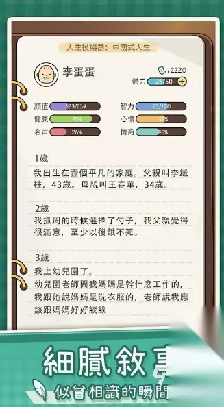 高速下载 普通下载 优先233乐园APP下载 7、《人生模拟器:中国式人生》 游戏开始,你出生于某个家庭,但是从这时候开始,你就可以对你的人生进行掌控,同时你也可以体验到在现实生活当中,没有体验过的创业或者是更换性别,人物属性等等。就在这里,来开启自己的新生活吧,忘掉现实生活中的烦恼。
