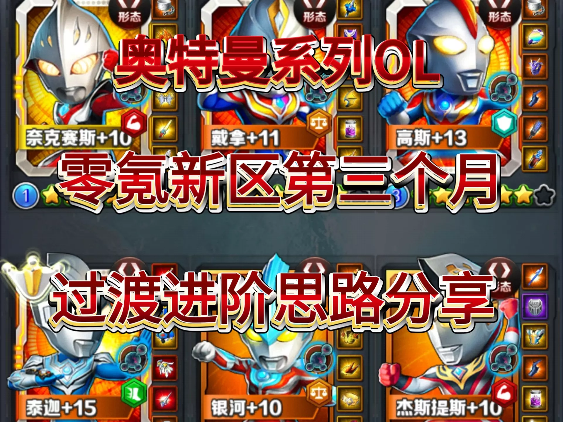 这是粉丝投稿的奥特曼系列OL游戏勋章讲解,展示了光辉赛罗、赛迦、格丽乔不同角色的勋章搭配方案,以及对应带来的属性加成效果,同时讲解了勋章搭配的思路,帮助玩家更好提升角色属性战力。