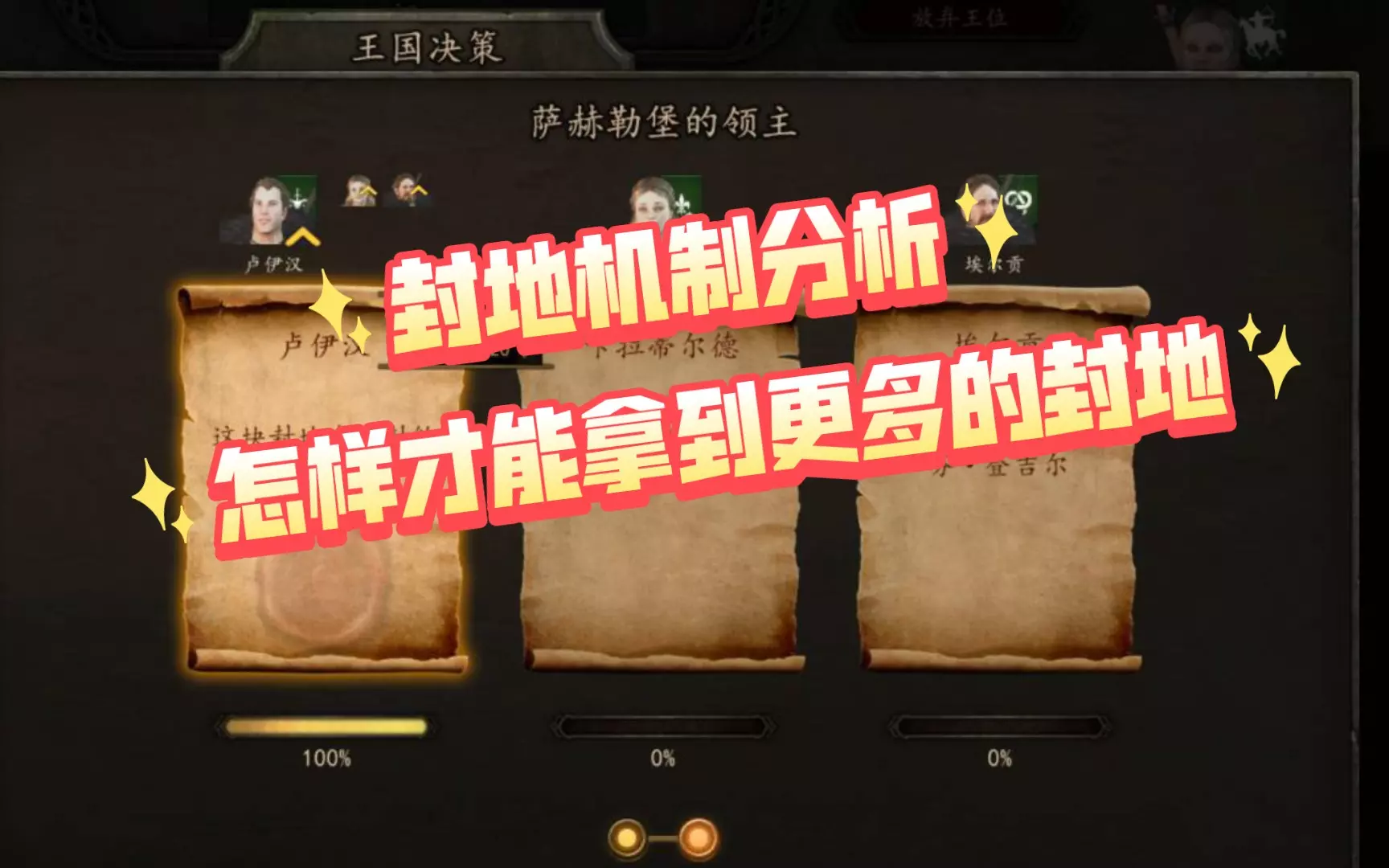 这个视频介绍了封地的机制和怎么去拿更多封地