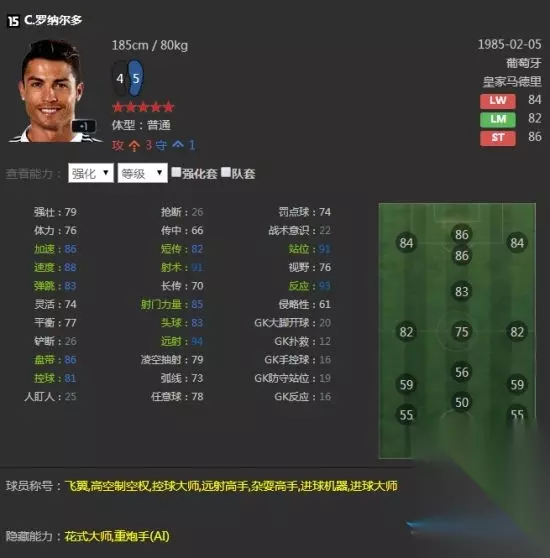 跑位与单刀都是美如画,进球手到擒来,经理人中非常稳定的神锋,似乎K神到了电脑的手中才能发挥出最大的光芒,后插上的头球几乎无解,各种力压,在正常模式中少见的情况经理人中他都能一一展现。 15C罗