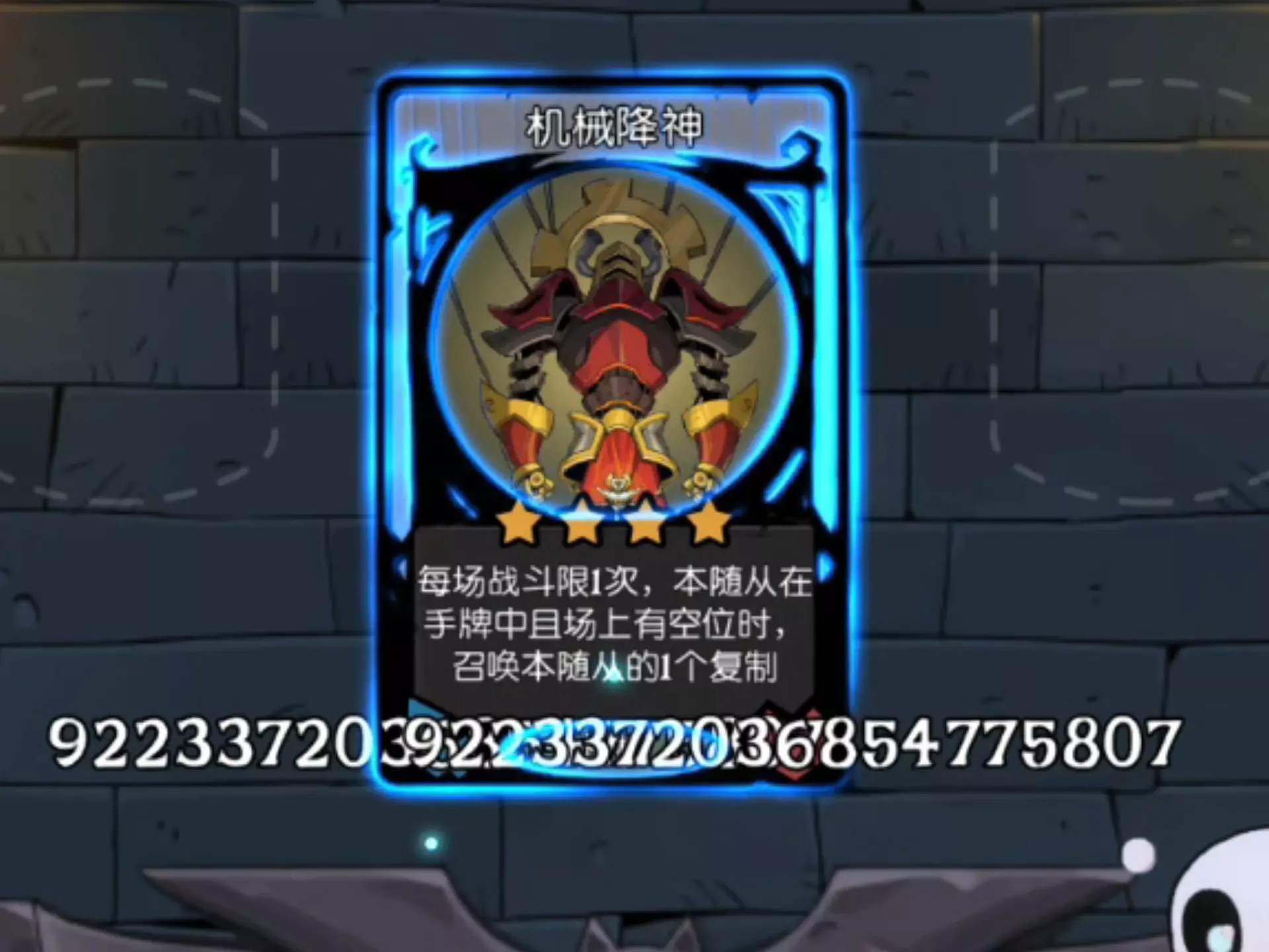 这是《月圆之夜》自走棋玩法的游戏内容展示,玩家通过选择、培养抄写员、怒熊等随从卡牌,搭配咒术牌、装备牌来强化随从,最终达成卖出时获得2147483647个随从的特殊游戏效果。