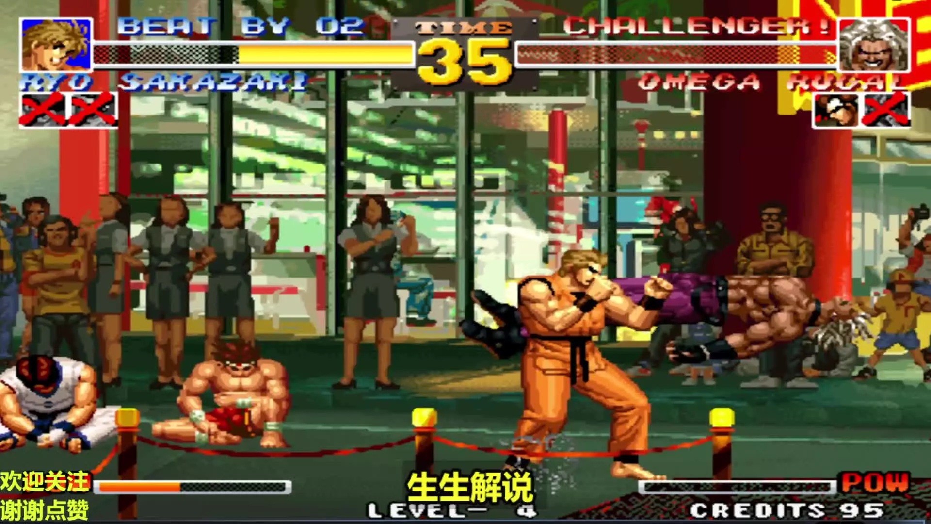 这是一期怀旧格斗游戏《拳皇97降龙》的对战内容,玩家麦杆操控坂崎良连开翔吼拳必杀,与玩家满天飞操控的罗伯特展开精彩对战,展现了角色的强力招式。