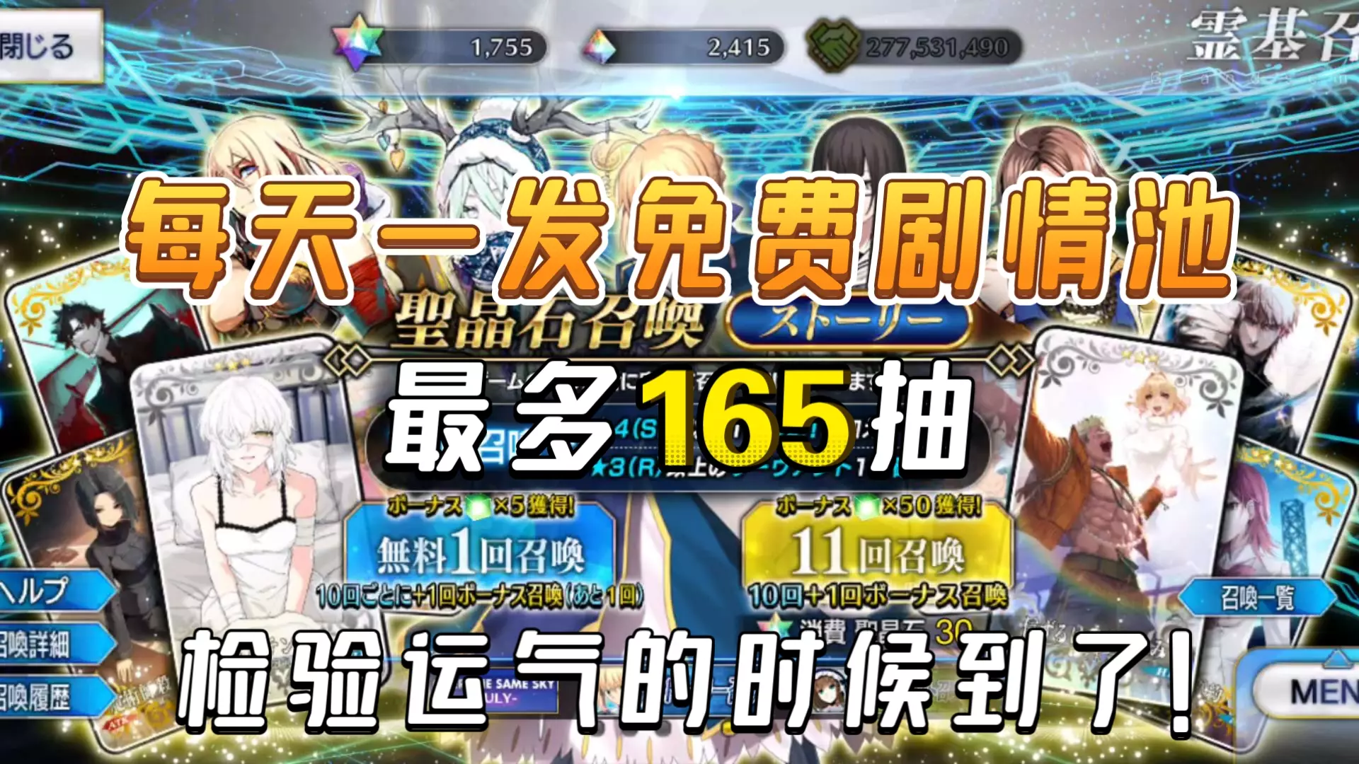 持续时间:8月4日3点~12月31日22点59分 每天都可以抽一发但只有一发别多抽了喔! 按期望165*0.01=1.65个五星从者 165*0.03≈5个四星…