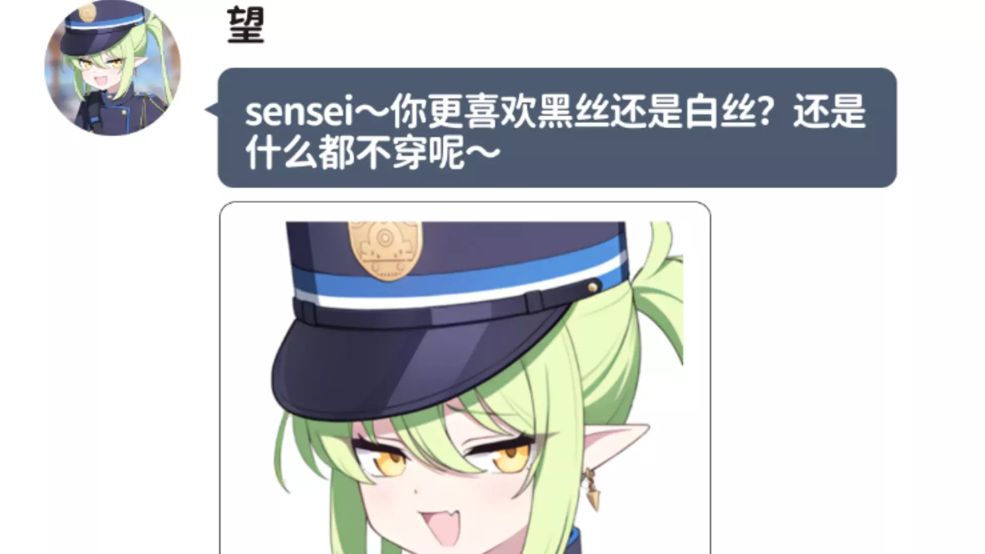 这是一段趣味聊天内容,用户听闻管理员喜欢修女服,便分享了自己的修女服相关二次元角色图,管理员夸赞该修女服角色很有气质。