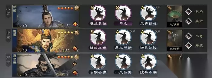 《率土之滨》曹操常用配队推荐 螃蟹队和刺猬队 首先是风头正盛的螃蟹队和刺猬队。曹操的队伍一般都是一些爆发性比较强的队伍,所以要么搭配攻其不备,要么搭配神赏。 远…