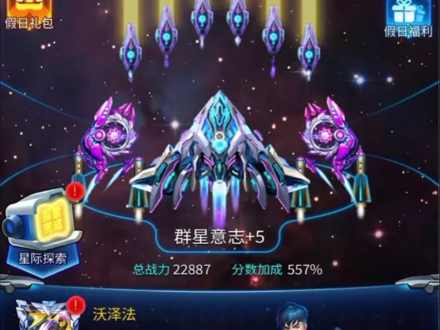 这是游戏《雷霆战机》的相关内容,展示了用群星意志配置挑战逐星长阶的过程,画面呈现了战斗时的华丽弹幕、得分变化,还有预设方案界面与本关特性,该玩法过程趣味十足。