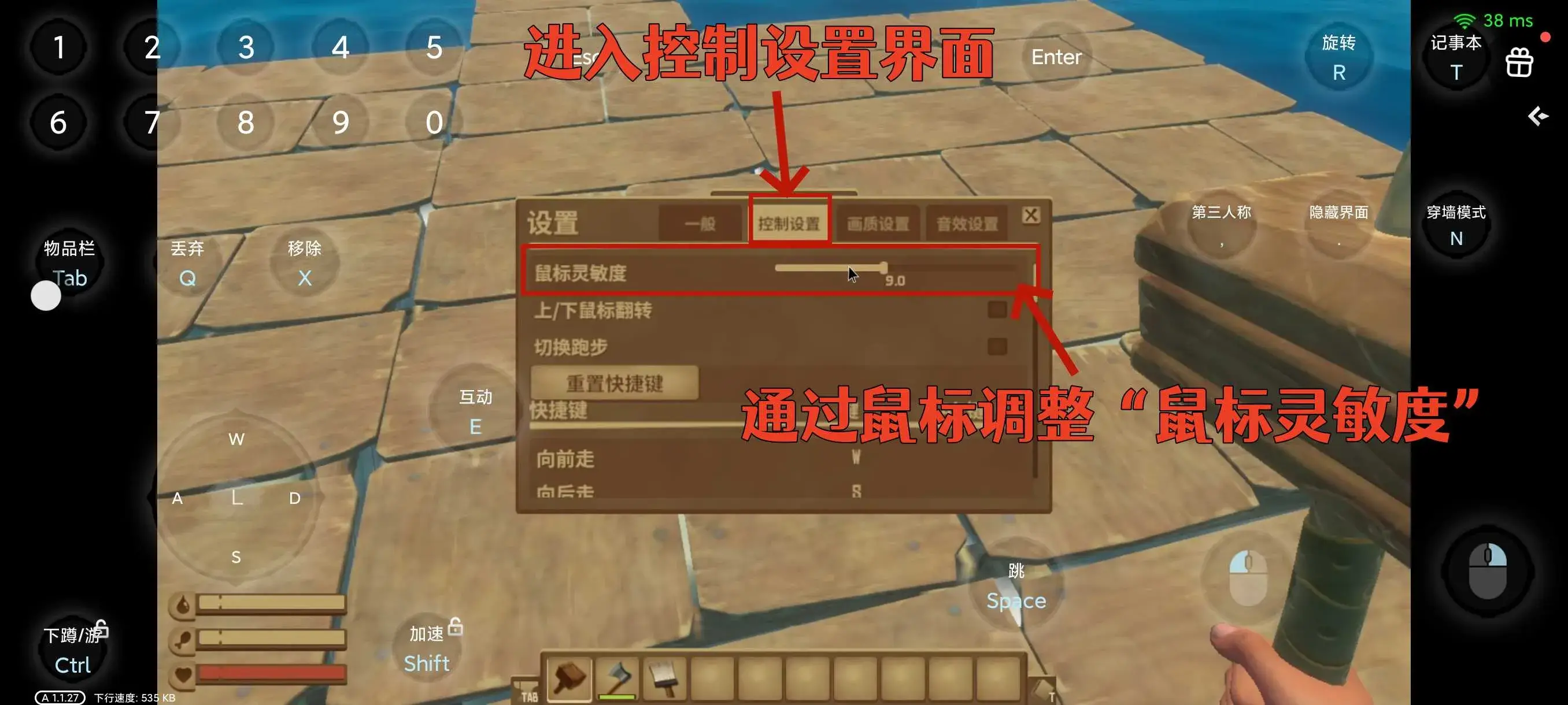 3.接着进入【控制设置】,然后通过鼠标来调整【鼠标灵敏度】即可,【鼠标灵敏度】越高,在游戏中旋转方向的时候就越快越顺