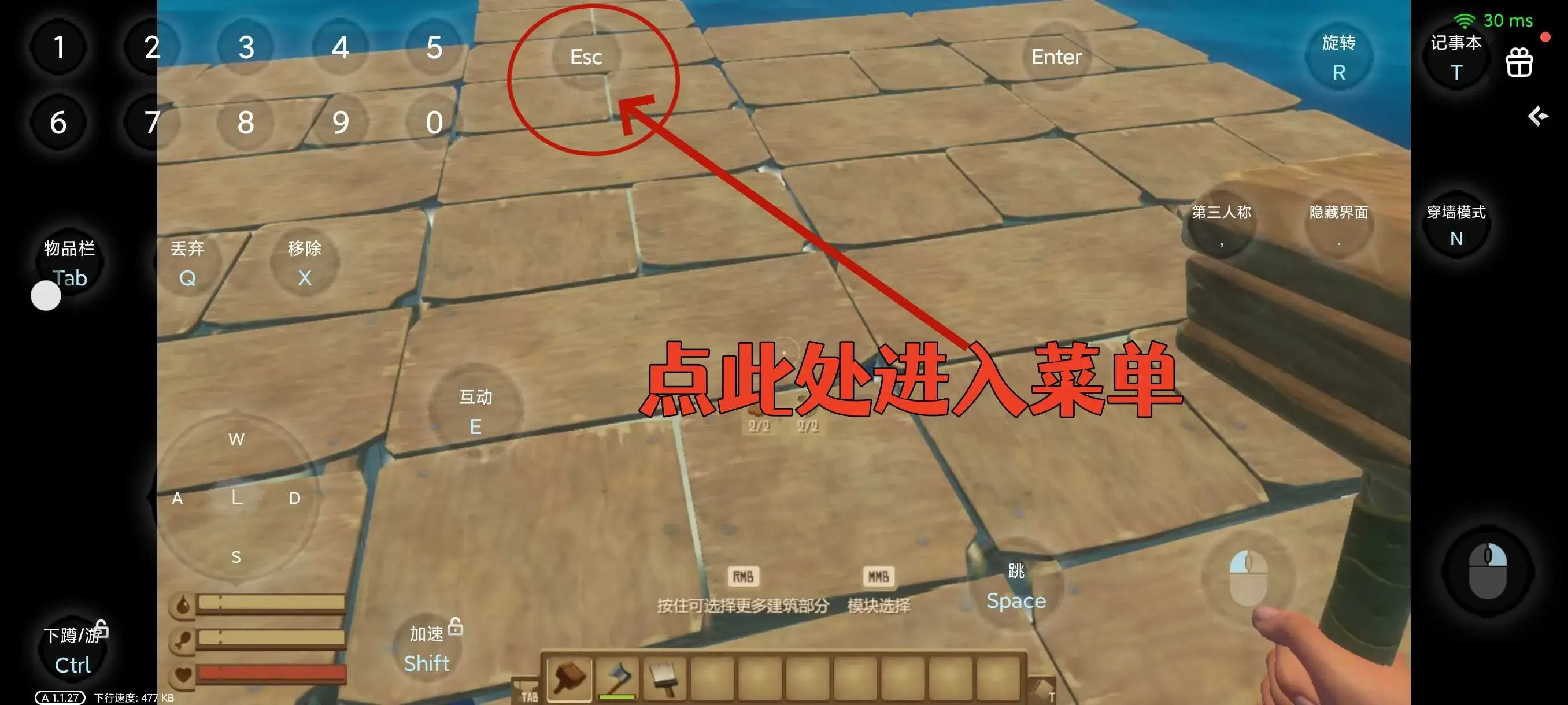另外觉得屏幕中的各个按键布局、大小不喜欢的话,可以点击下图蓝色方框的图标,进入按键调整界面,调整按键的位置和大小。