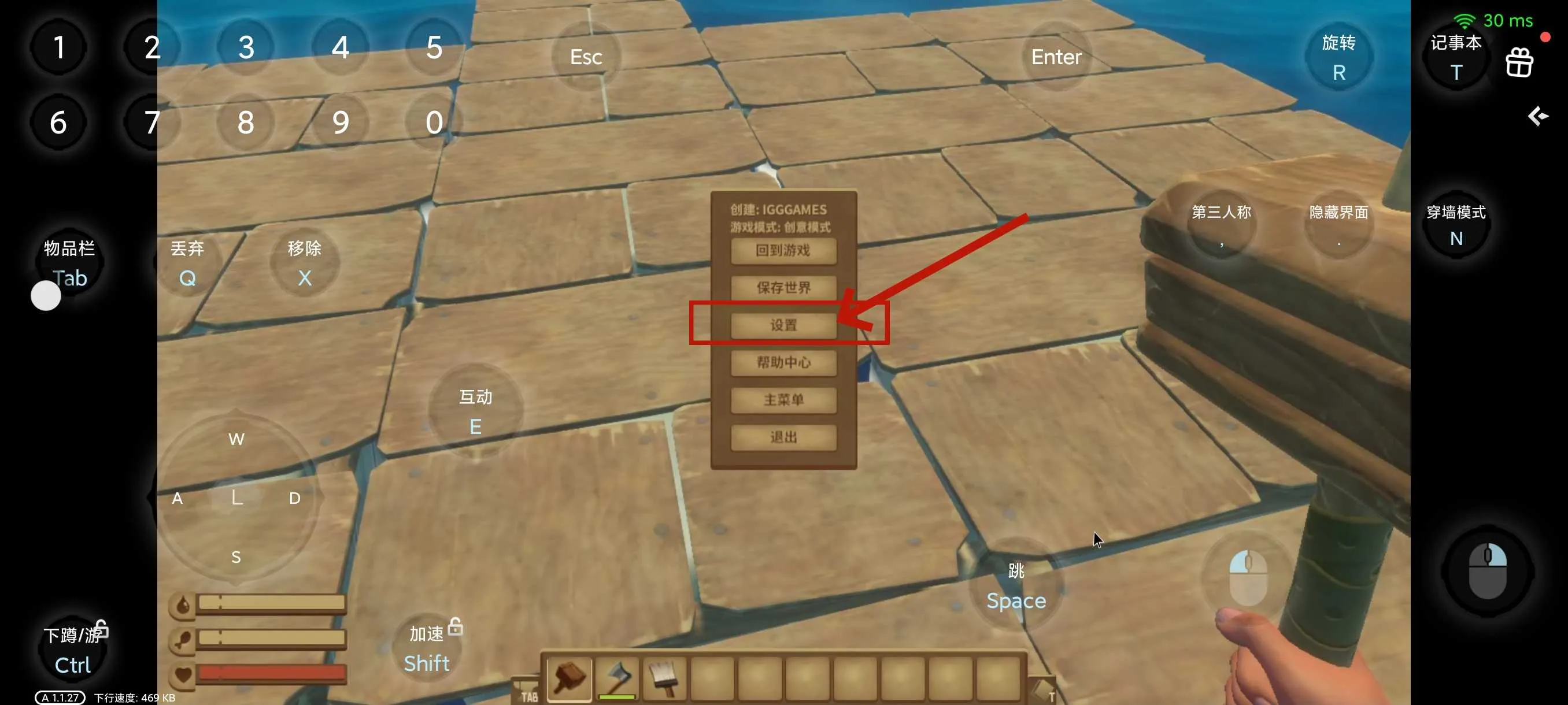 2.然后选择菜单中的【设置】,进入游戏设置界面