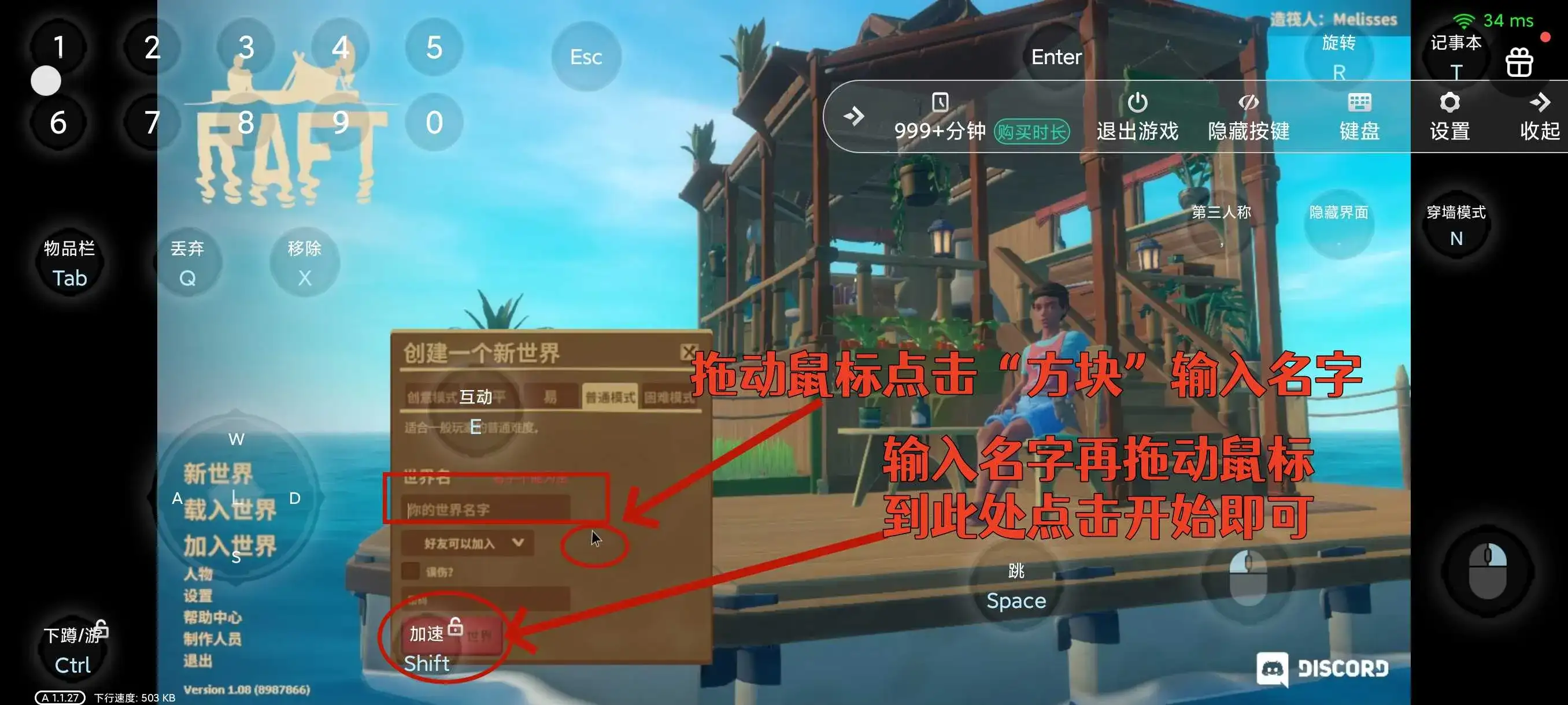 2.点击了【新世界】后,我们再把“鼠标”拖动至下图中画框的位置,同样的点击一下就会弹出键盘让我们输入名字
