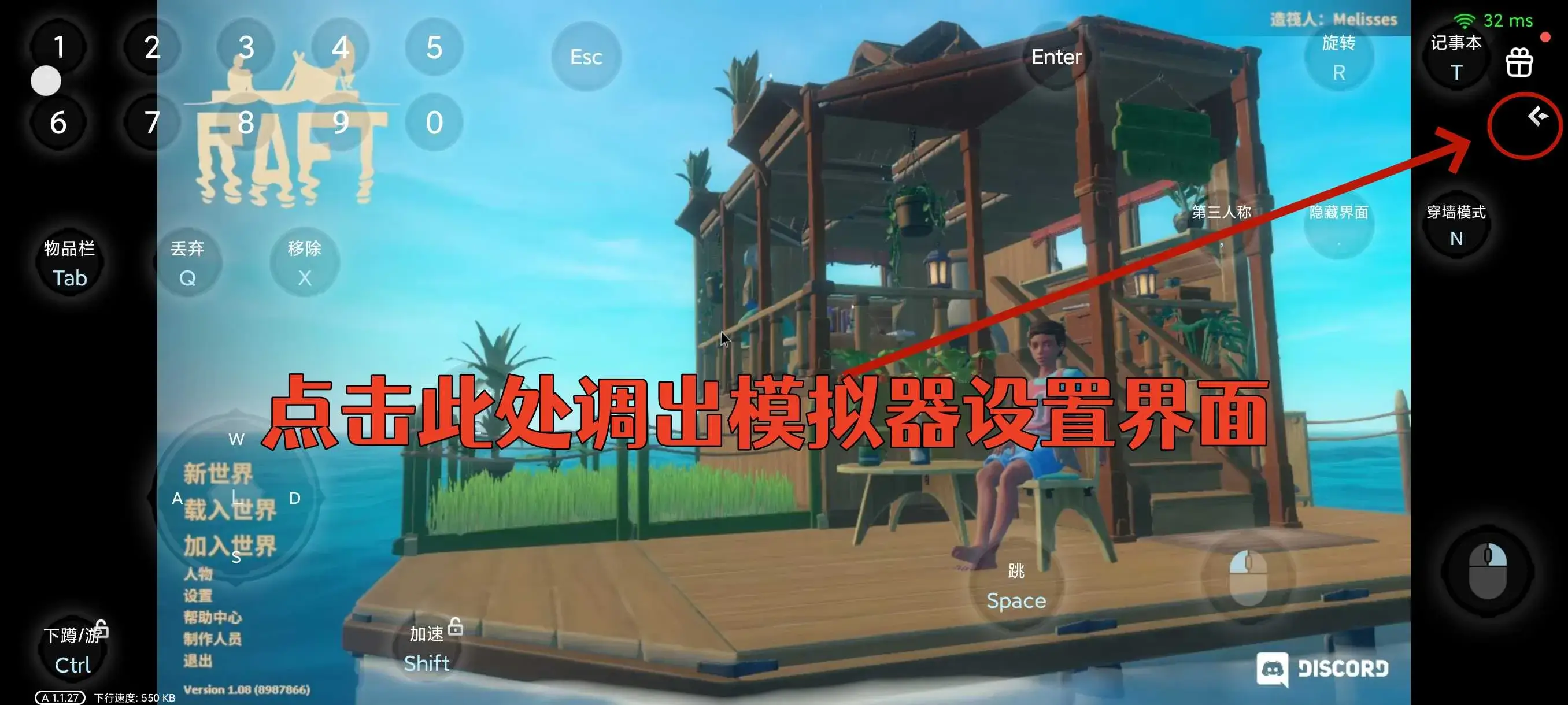 1.我们点击屏幕右上角的箭头(下图画圈的位置),调出模拟器设置界面
