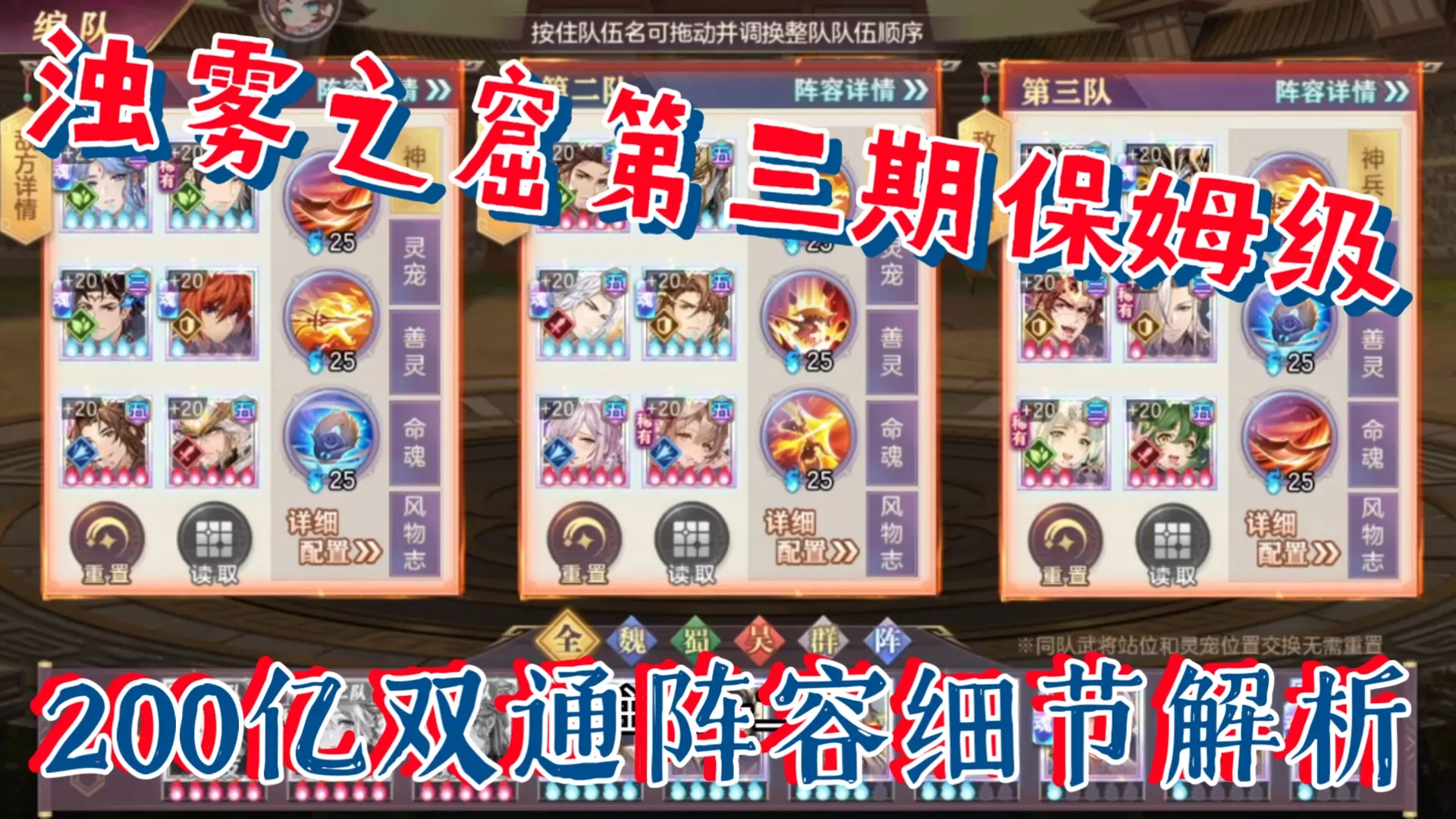 这是《三国志幻想大陆》浊雾之窟第三期的保姆级攻略,带来10亿单通阵容搭配,还针对不同武将拥有情况给出阵容替换方案,助力玩家通关玩法关卡。