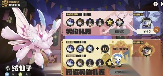 战令介绍:S1赛季战令有月光和星光两种主题,玩家可从【疾光千兽】和【绒仙子】中二选一,选择后不能更改。这两种主题的战令除了精灵果实不一样,其他奖励没有任何差别,没有选择的那只精灵可以通过好友互访的形式来获得。 疾光千兽:对首领血脉的精灵额外造成100%伤害,适合PVE玩法,当坐骑也不错。 绒仙子: 对于改变过血脉的精灵增伤增加50%,PVP玩法中登场率高于疾光千兽。