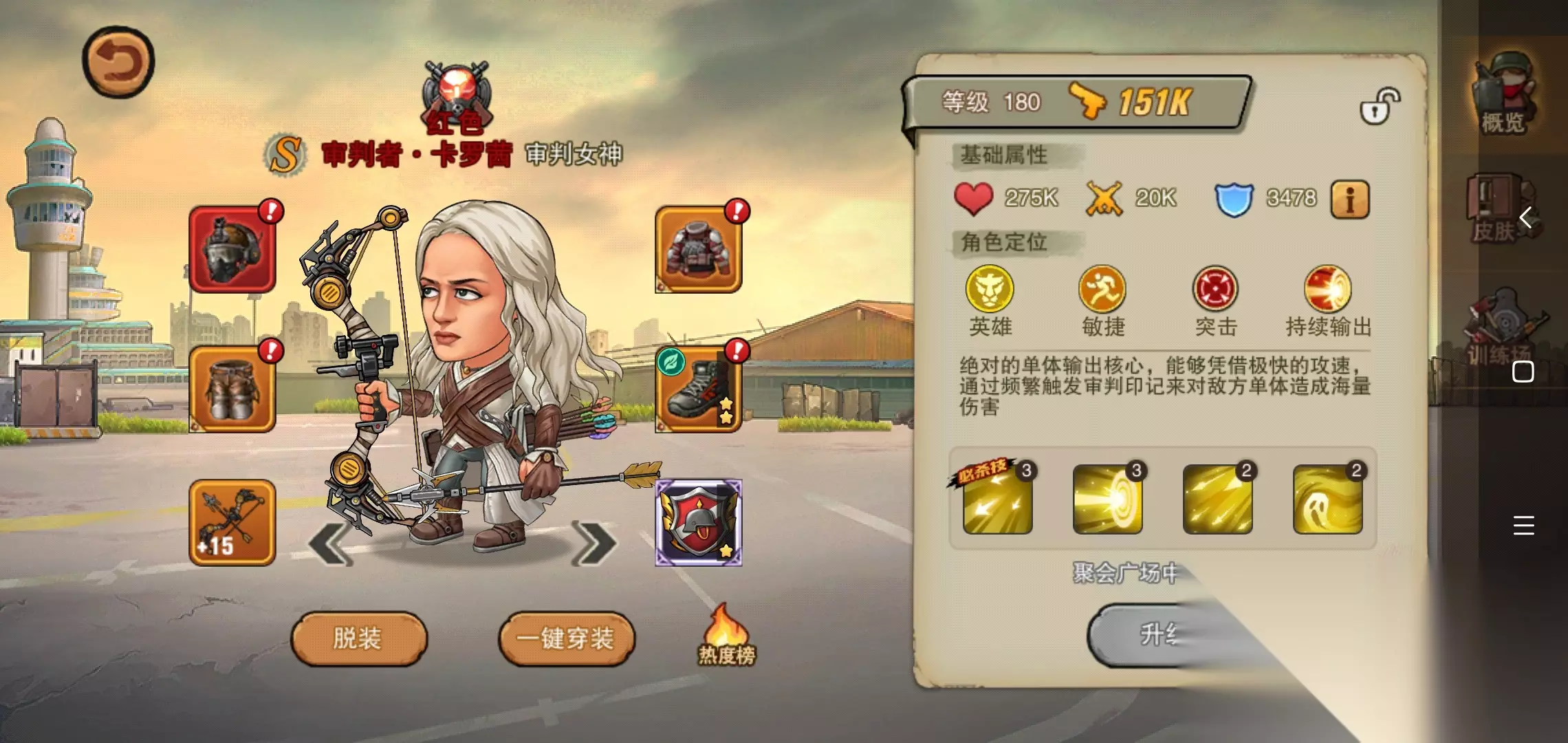 英雄和厄徒就不多说了,可以说不强但一定不弱,养的起的不用说,养不起的也不用说,平民就养审判女神,BOSS关杀手,