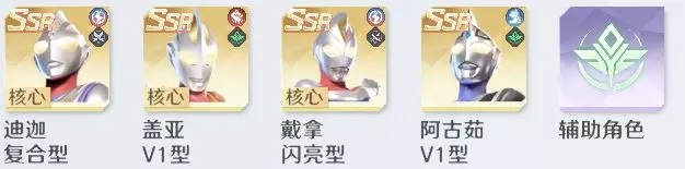 流派特点: 迪迦复合型和阿古茹V1提升队友控制命中率,盖亚V1和戴拿闪亮型频繁施加控制效果。