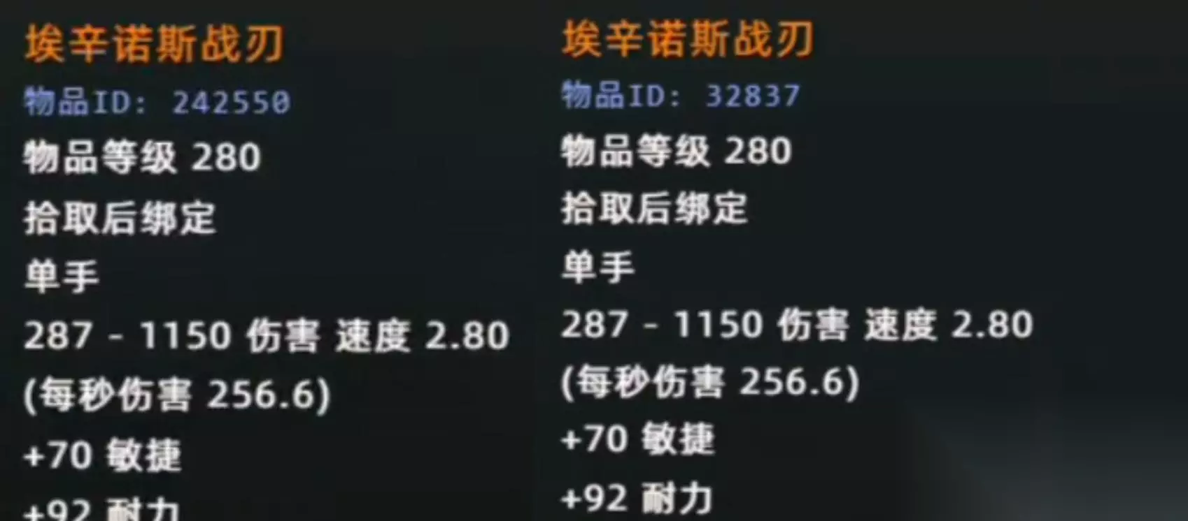 这样的开放顺序也会引发一个非常尴尬的问题——不同职业的橙武获取时间差距太大。 如果不修改橙武获取方式,那么也就意味着最后一个阶段才能拿到蛋刀,潜行者也会再次成为“破甲工具人”。 3,蛋刀改为单手武器 原版蛋刀是主副手武器,主手2.8攻速,副手1.4攻速。“E大”挖掘出来的蛋刀的则变成了单手武器,并且都是2.8攻速。
