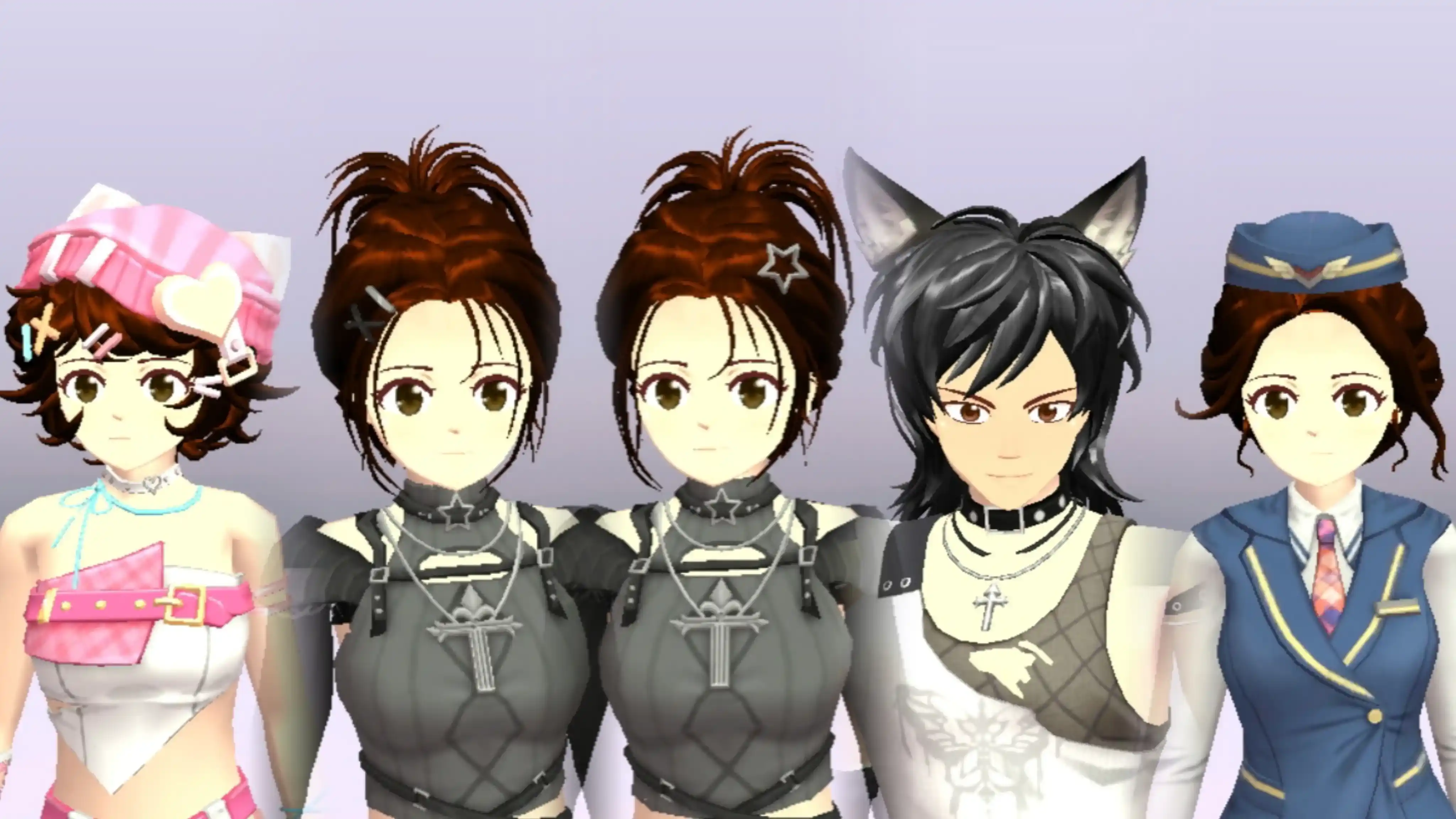 服装6套:时尚校服(男)、时尚校服(女)、落樱(女)、粉兔轻语(女)、水手服2(女)、学院服(女)