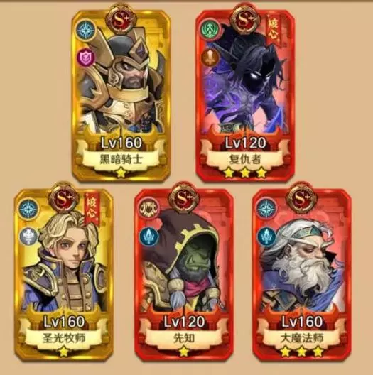 大魔法师(急速提高,和黑暗骑士羁绊获得防御加15%,不错的辅助)。这套阵容主够应付前期大部分图和塔了。也可以前期冲榜用。