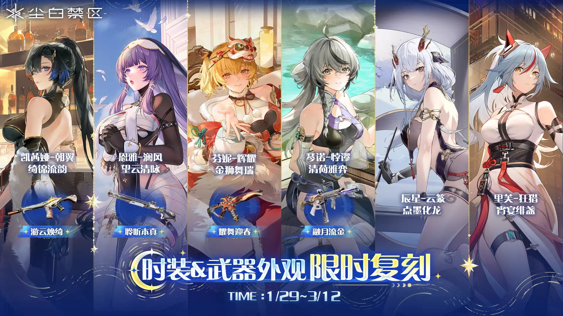 可选角色范围:琴诺-悖谬、薇蒂雅-天鹅座、凯茜娅-朝翼、辰星-云篆。