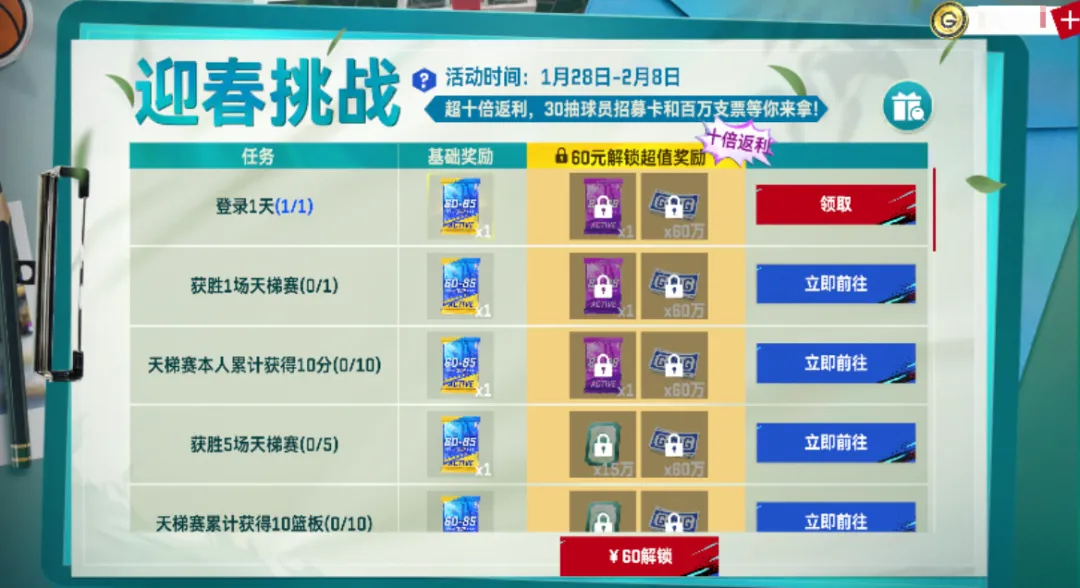 还可解锁超值奖励获取球员招募券