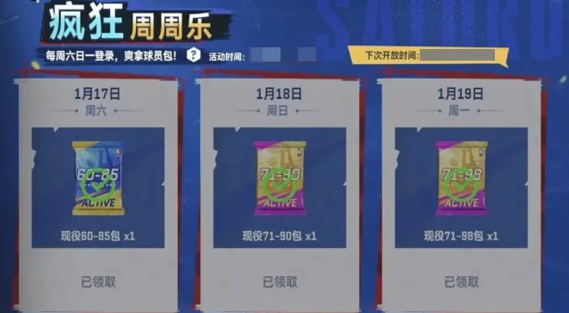 疯狂周周乐活动持续开启中!每周六日一上线直领超多球员包!助力Boss爽玩周末!