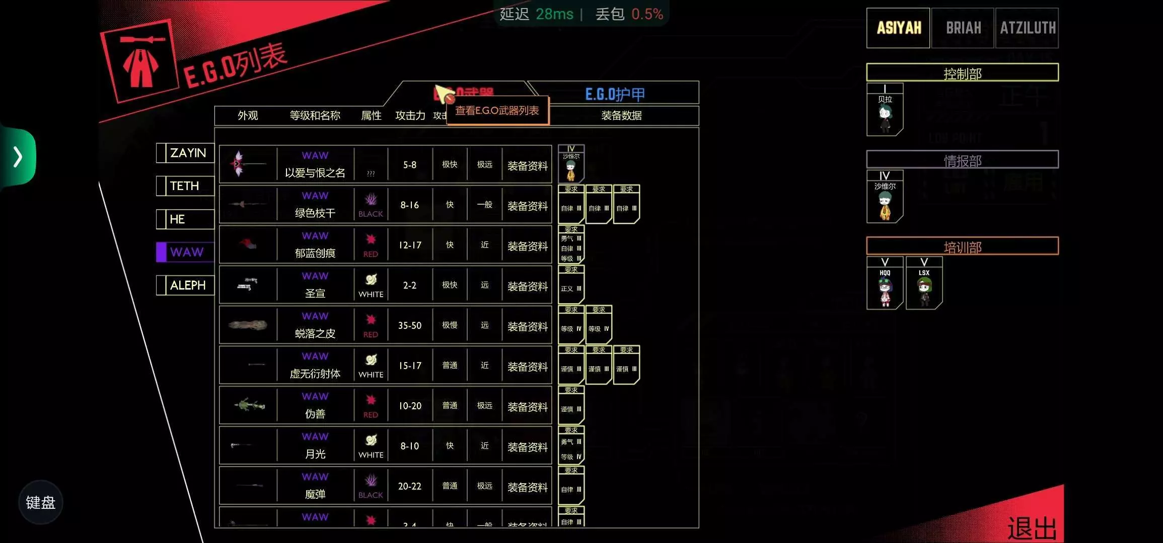 加班一个月的成果,你们有没有谁收过白夜?这玩意儿是真的难管,每天都会和一个异想体换位置,而且过一会儿就扣掉逆卡巴拉计数器,出逃以后还暂停不了,而且如果你有员工是他使徒的话,如果那员工死了,他也会被复活变成使徒,就很难,不过给的一只有护甲倒挺不错的,一只有武器需要打败白夜才能获得,现在也是没实力啊,而且收白夜的时候不知道是怎么的,两个五级员工没了,四个A级ego也没了,直接白干##😭😭😭😭😭😭😭😭😭😭