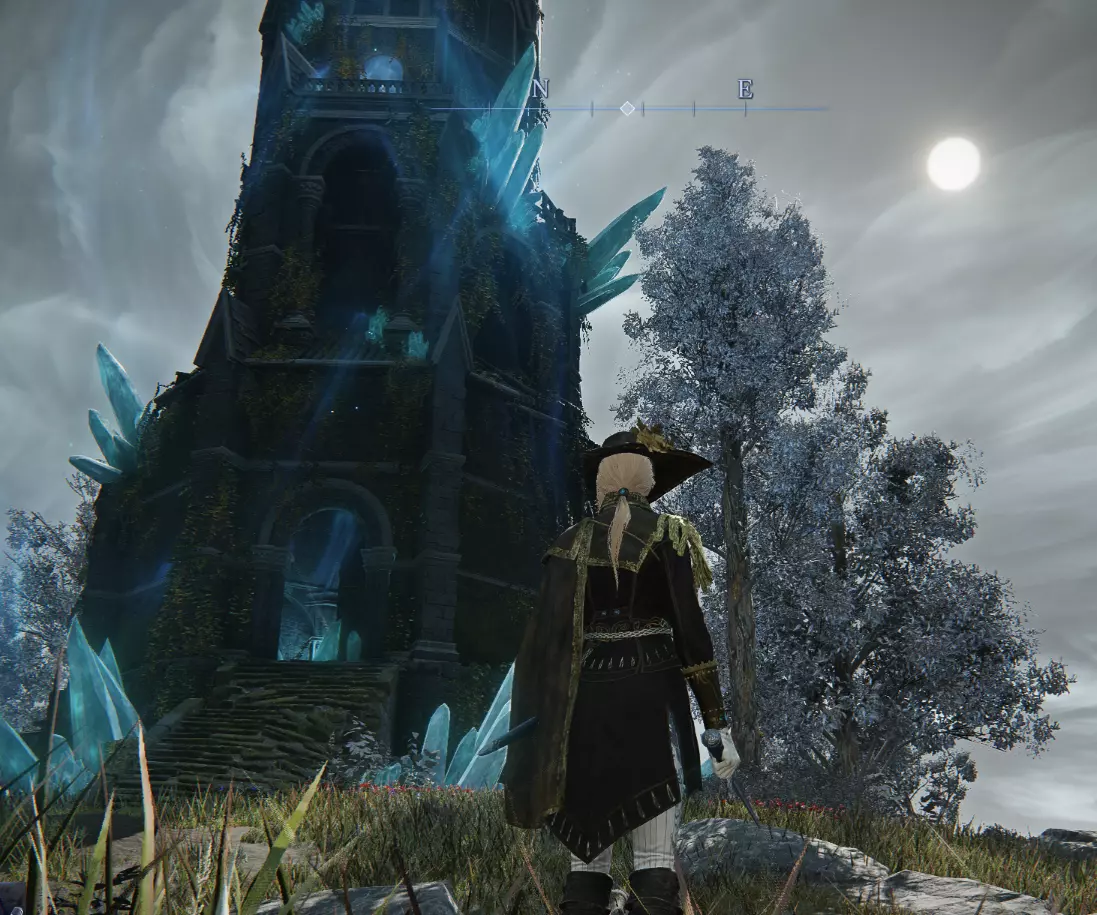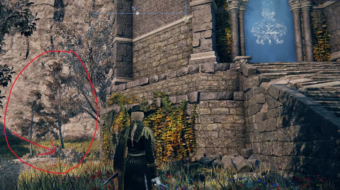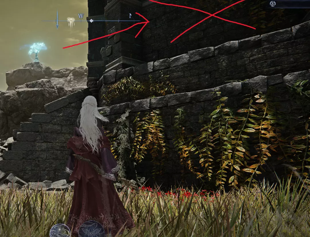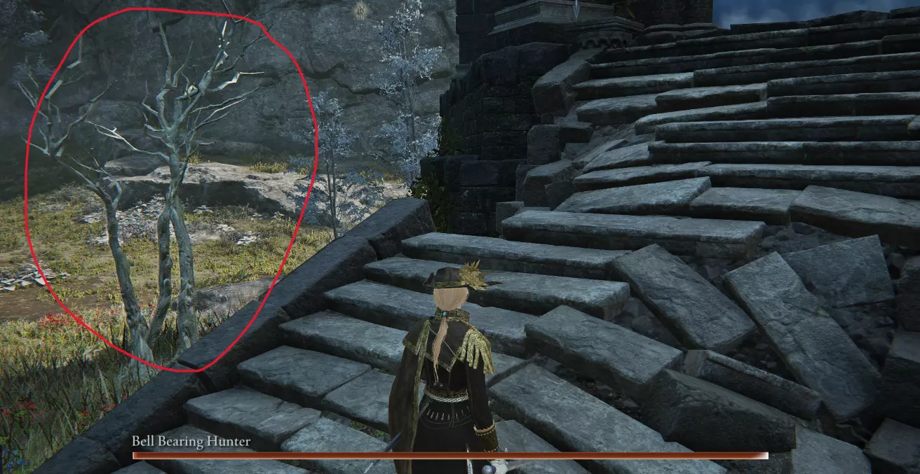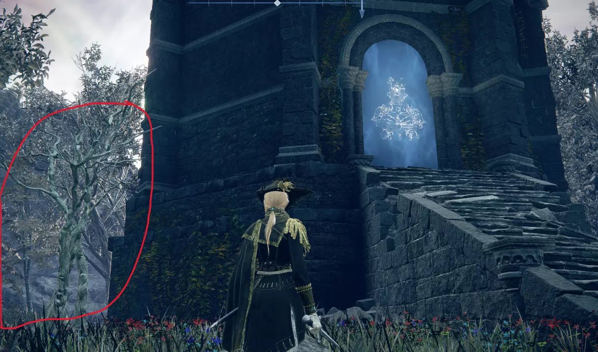 塔楼左侧(4-6) 外面塔楼左边的波峰有三个可能的位置。 4.没有叶子的短白色多主干树,隐藏的羽冠 如果你在塔的左边看到一棵没有叶子的短白色多干树,打它,它会露出一个顶峰。