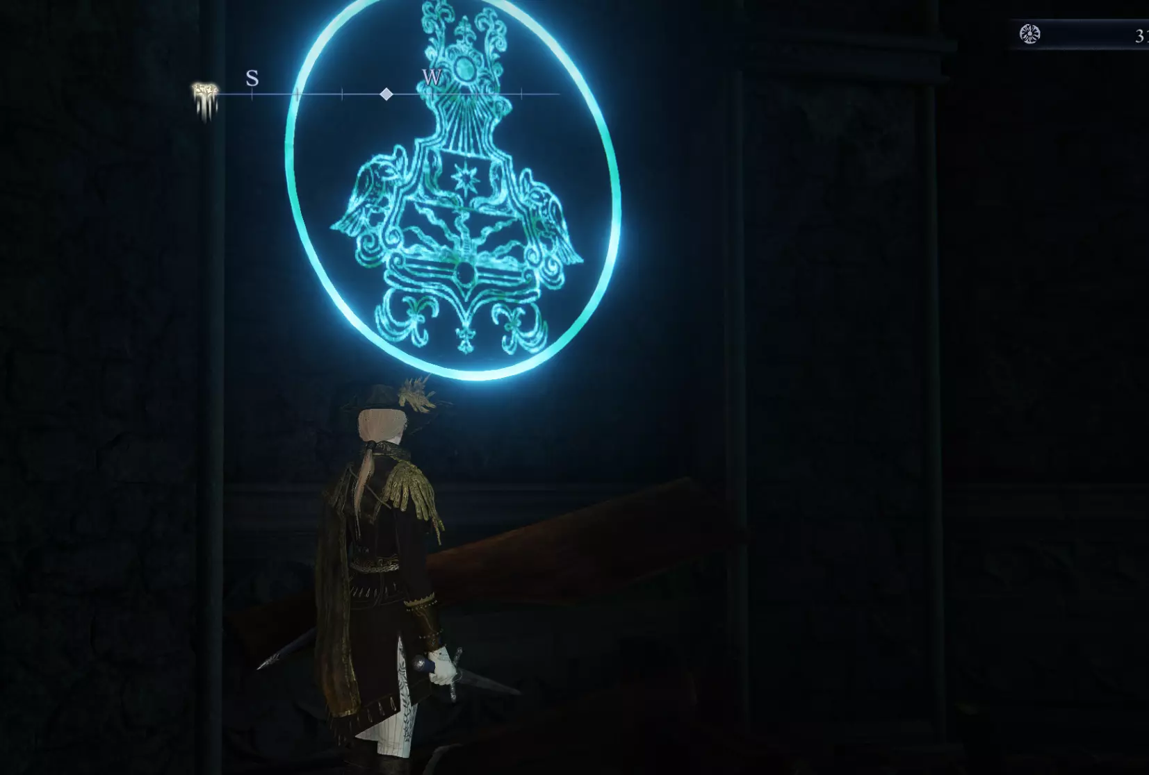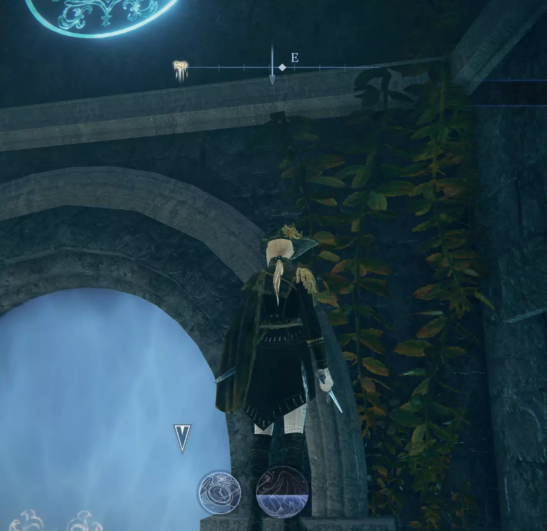 10.墙上入口上方,可见顶 这个徽章就在墙上前门的正上方。跳到边上的壁架上,然后跳两次击中它,或者用箭射它。