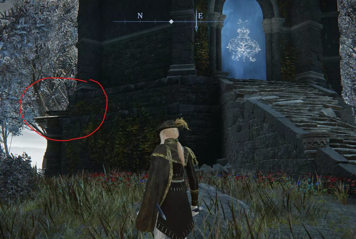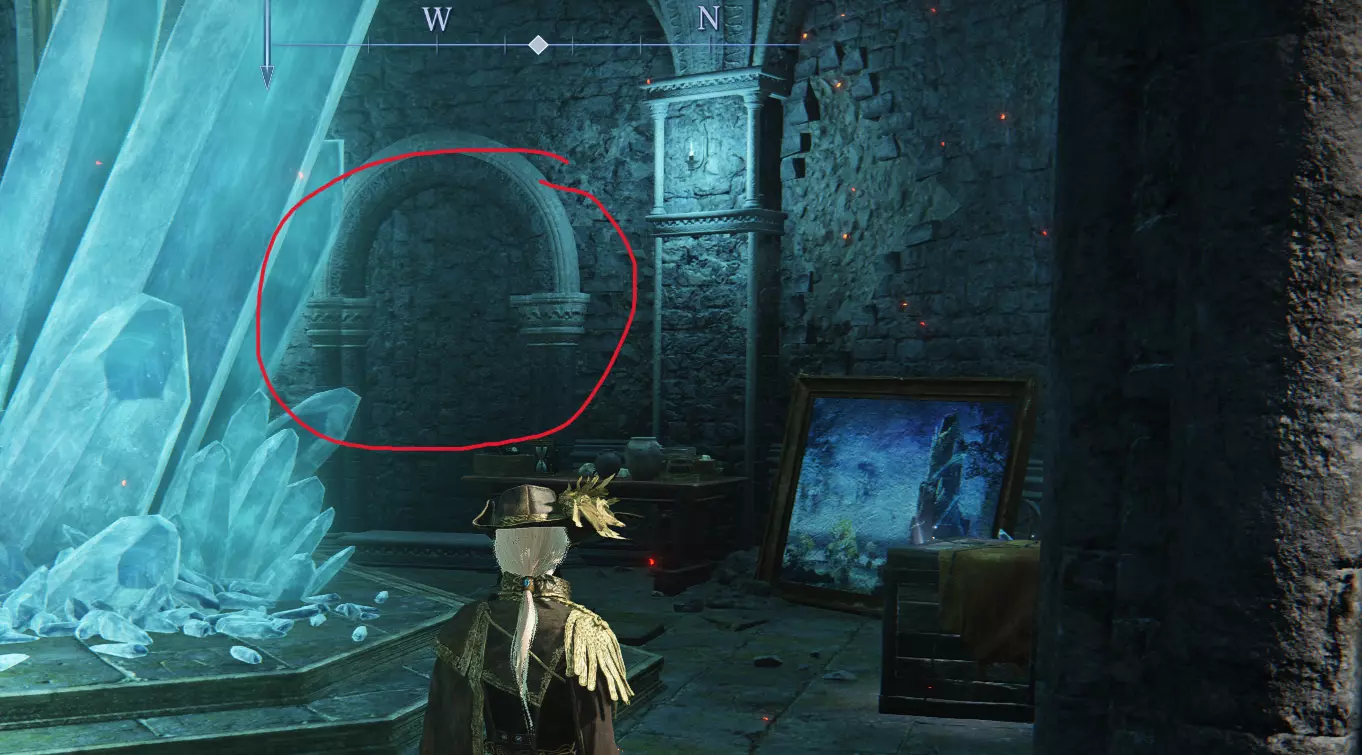 假冠(13?) 这一个是不帮你解锁入口的假纹章,如果你靠近它,它反而会爆炸。它在墙壁的左侧可见。