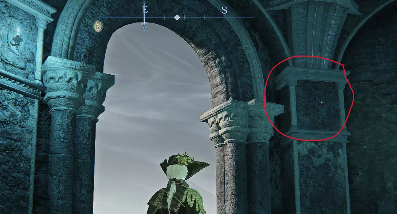 这意味着波峰是一个无形的波峰,正如画中暗示的那样,它位于塔外的墙上。隐形的波峰在壁架上方的墙上,就在右侧入口楼梯旁边。