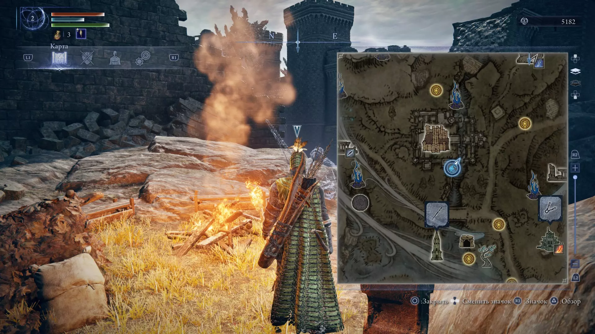 初始阵营总是出现在着陆点附近,每个阵营都隐藏着一个带元素武器的BOSS(类型可以通过地图上的图标来确定),此外还有一个带弓箭的支架和一个商人。 废墟